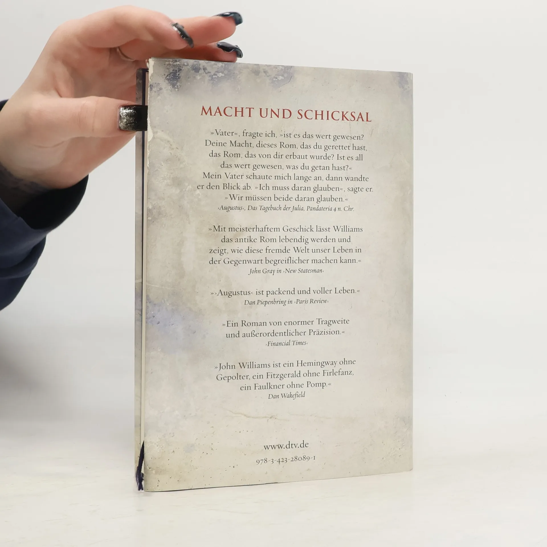 Was es heißt, ein Mensch zu sein ... Das Hauptwerk von John Williams endlich auf Deutsch! Octavius ist neunzehn, sensibel, wissbegierig, und er will Schriftsteller und Gelehrter werden. Doch als Großneffe und Adoptivsohn Julius Cäsars fällt ihm nach dessen Ermordung ein gewaltiges politisches Erbe zu: Ihm, der von schwächlicher Konstitution aber enormer Willenskraft ist, wird es durch Glück, List, Intelligenz und Entschlossenheit gelingen, das riesige Römische Reich in eine Epoche des Wohlstands und Friedens zu führen. Williams schildert das Wirken und Leben dieses außergewöhnlichen Mannes, des späteren Kaiser Augustus‘, in dramatischen Szenen, so plastisch, so mitreißend, als würden die Geschehnisse sich in unseren Tagen ereignen. Überwiegend fiktive Briefe und Notizen, Erinnerungen und Senatsprotokolle lassen die Person eines Herrschers lebendig werden, dem das Schicksal Macht und Reichtum in vorher ungekanntem Ausmaß zuspielte. Aber er, der sich zum Gott erheben ließ, sieht am Ende, von Frau und Tochter entfremdet, dem Tod so ungeschützt entgegen, wie jeder Mensch – als das »arme Geschöpf, das er nun einmal ist.« Auch dieser historisch-biographische Roman fügt sich in das schmale aber außerordentliche Werk des posthum durch ›Stoner‹ weltberühmt gewordenen Autors, in dessen Mittelpunkt die tiefgreifende Frage steht, was es heißt, ein Mensch zu sein.