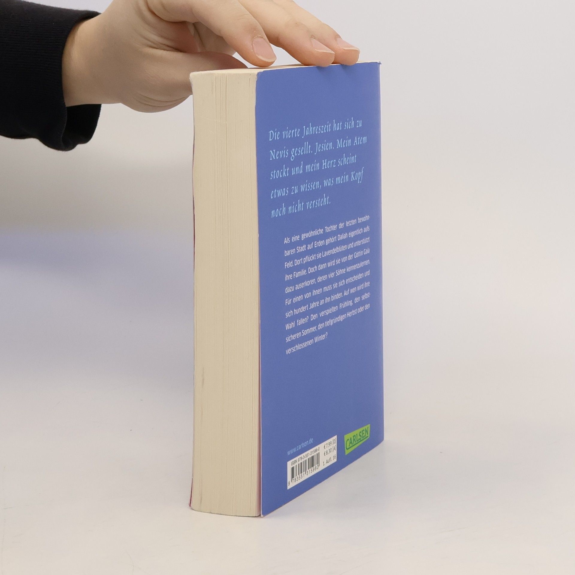 Als eine gewöhnliche Tochter der letzten bewohnbaren Stadt auf Erden gehört Daliah eigentlich aufs Feld. Dort pflückt sie von klein auf Lavendelblüten und unterstützt ihre Familie. Doch dann wird sie von Göttin Gaia dazu auserkoren, ihre vier Söhne kennenzulernen. Für einen von ihnen muss sie sich entscheiden und sich hundert Jahre an ihn binden. Auf wen wird ihre Wahl fallen? Den verspielten Frühling, den selbstsicheren Sommer, den tiefgründigen Herbst oder den verschlossenen Winter? //Alle Bände der bittersüßen Bestseller-Reihe: -- Morgentau. Die Auserwählte der Jahreszeiten (Buch 1) -- Abendsonne. Die Wiedererwählte der Jahreszeiten (Buch 2) -- Nachtblüte. Die Erbin der Jahreszeiten (Buch 3) -- Tagwind. Der Bewahrer der Jahreszeiten (Buch 4) -- Göttertochter. Das Kind der Jahreszeiten (Buch 5) -- Göttersohn. Der Nachfahre der Jahreszeiten (Buch 6)// Alle Bände der Reihe haben ein abgeschlossenes Ende und könnenunabhängig voneinander gelesen werden - mit Ausnahme von »Göttersohn«, dessen Geschichte »Tagwind« weiterführt.