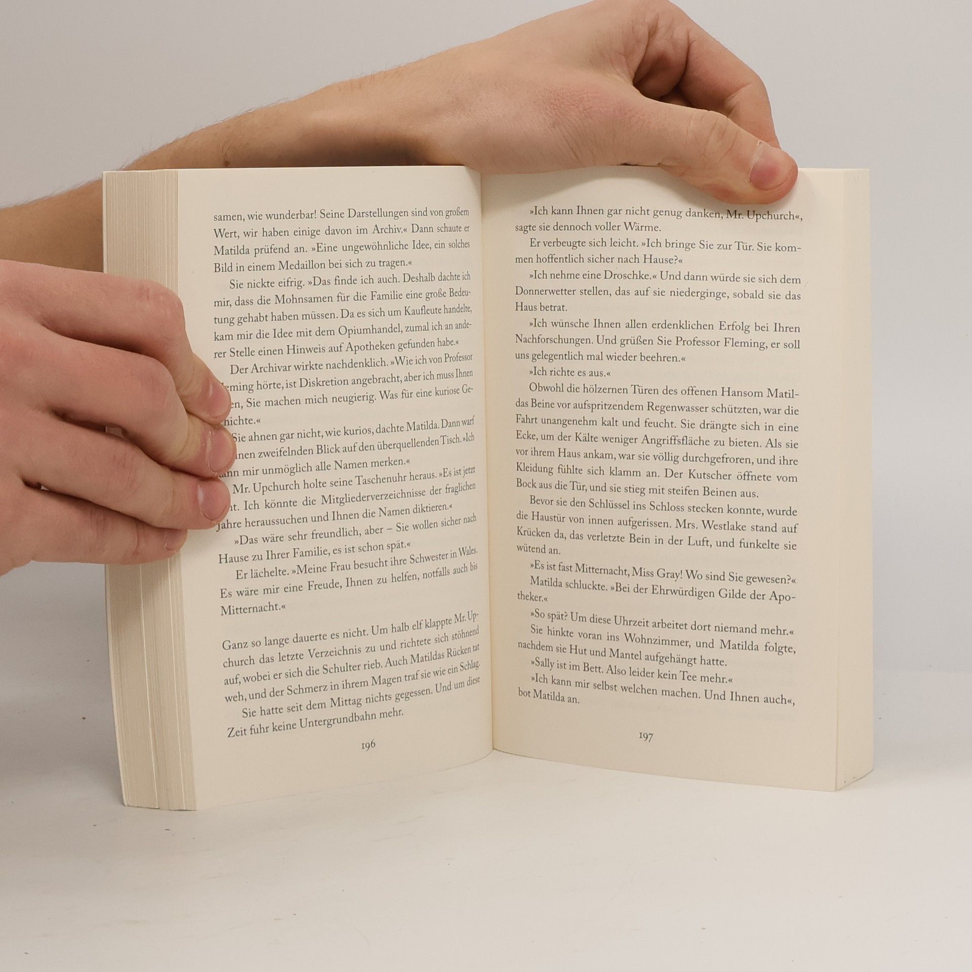 London 1900: Matilda Gray ist Lehrerin an einer Mädchenschule und führt das Leben einer unabhängigen Frau. Als ihre Lieblingsschülerin Laura nicht mehr zum Unterricht erscheint, ahnt Matilda, dass diese in Gefahr ist. Zu plötzlich ist ihr Verschwinden, zu fadenscheinig sind die Begründungen des Vormunds. Eine verschlüsselte Botschaft, die ihr Laura auf einer Postkarte schickt, bringt Matilda auf die Spur des Mädchens. Ihre Suche führt sie zu dem Historiker Stephen Fleming und mit ihm zu einem jahrhundertealten Geheimnis, tief hinein in die verborgensten Winkel der Stadt.
