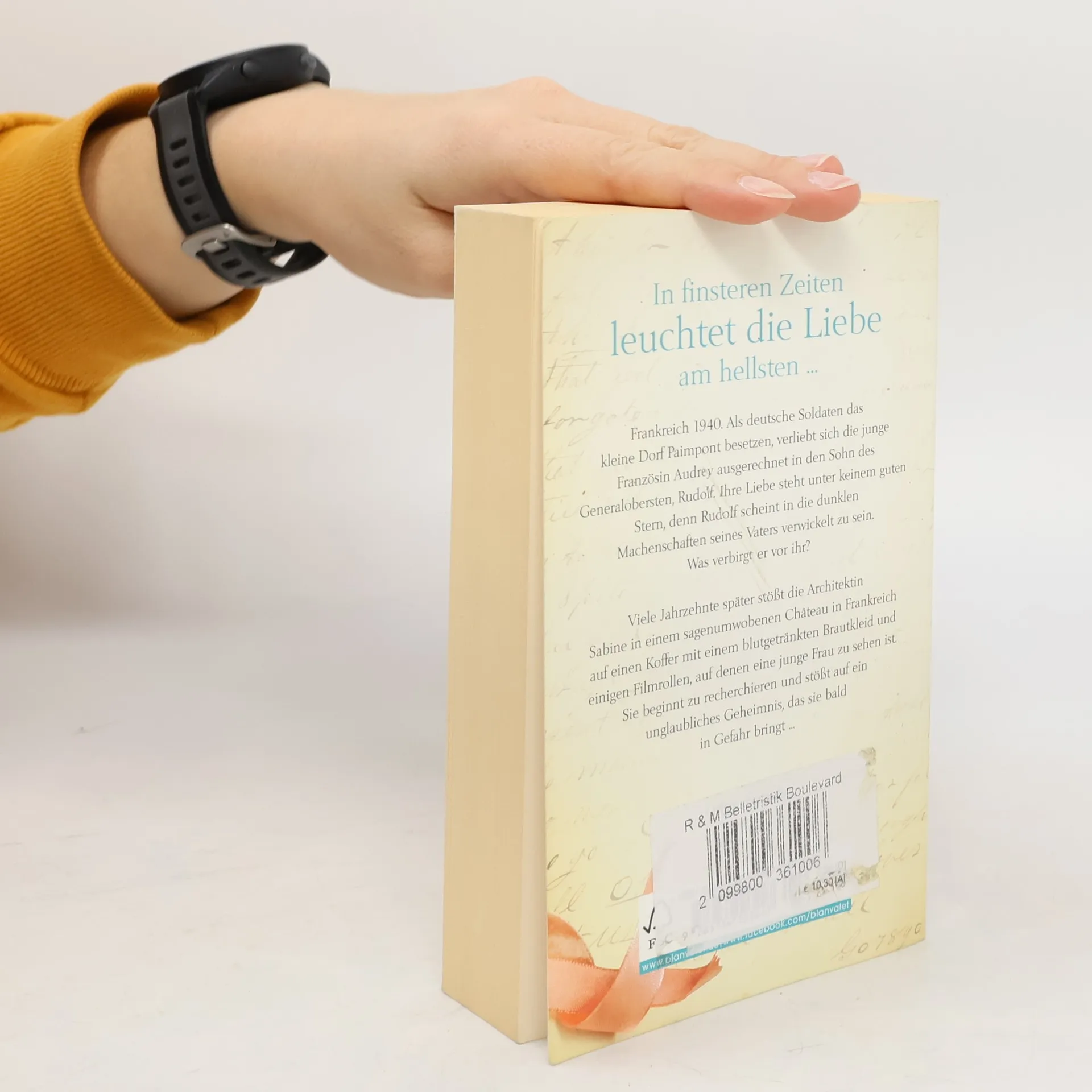 In finsteren Zeiten leuchtet die Liebe am hellsten Frankreich 1940. Als deutsche Soldaten das kleine Dorf Paimpont besetzen, verliebt sich die junge Französin Audrey ausgerechnet in den Sohn des Oberstleutnant, Rudolf. Ihre Liebe steht unter keinem guten Stern, denn Rudolf scheint in die dunklen Machenschaften seines Vaters verwickelt zu sein. Was verbirgt er vor ihr? Viele Jahrzehnte später stößt die Architektin Sabine in einem sagenumwobenen Château in Frankreich auf einen Koffer mit einem blutgetränkten Brautkleid und einigen Filmrollen, auf denen eine junge Frau zu sehen ist. Sie beginnt zu recherchieren und stößt auf ein unglaubliches Geheimnis, das sie bald in Gefahr bringt …
