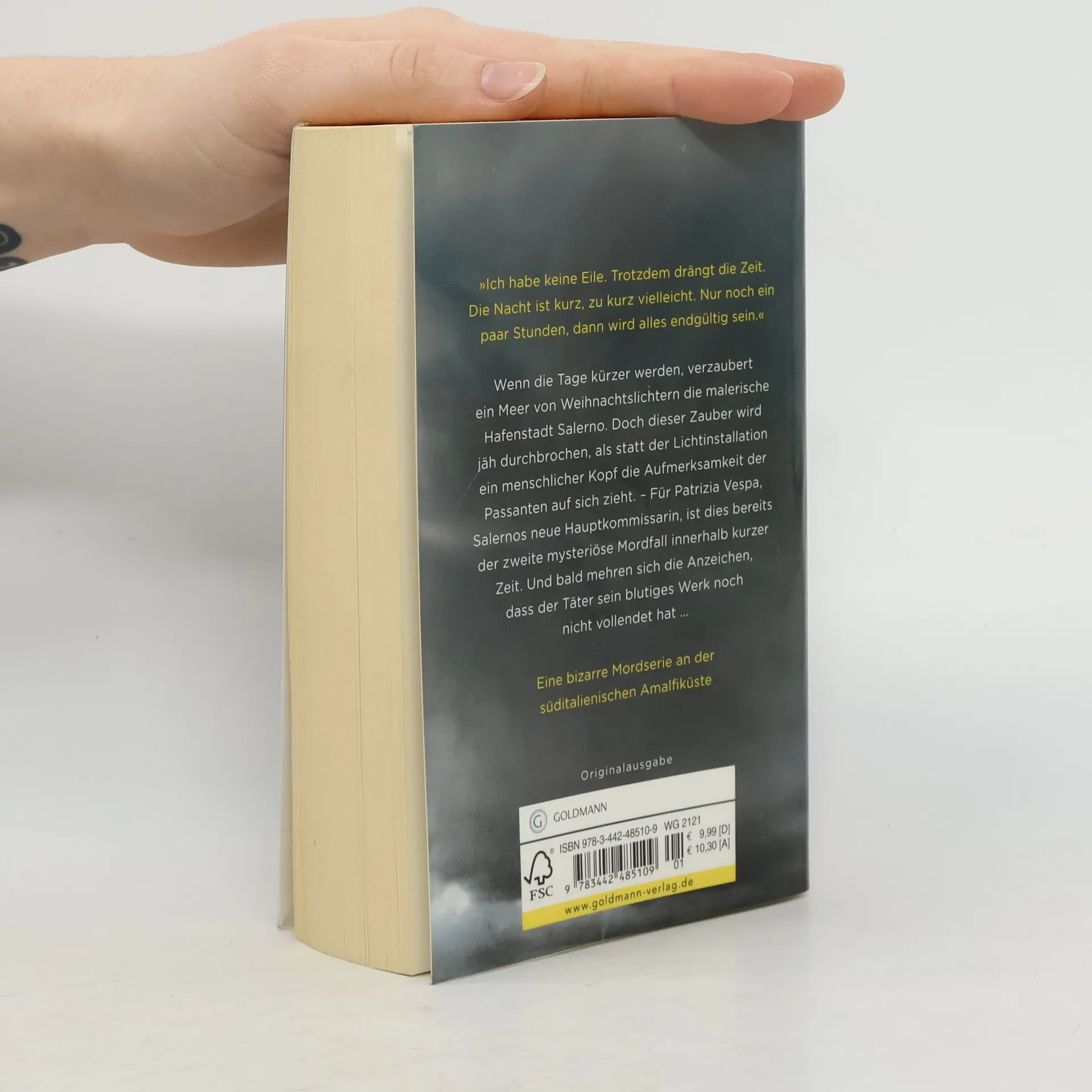 In der Vorweihnachtszeit strahlt Salerno in einem ganz besonderen Glanz: Wenn die Tage kürzer werden, verzaubert ein Meer von Weihnachtslichtern die malerische Hafenstadt an der Amalfiküste. Doch dieser Zauber wird jäh durchbrochen, als statt der Lichtinstallation ein kunstvoll an einer Hauswand drapierter menschlicher Kopf für Aufsehen sorgt. – Der zweite mysteriöse Mordfall innerhalb kurzer Zeit für Salernos frischgebackene Hauptkommissarin Patrizia Vespa, die erkennen muss, dass sie sich inmitten eines blutigen Rachefeldzuges befindet. Denn schon bald wird Salernos Lichtertraum durch den nächsten grausamen Mord getrübt ...