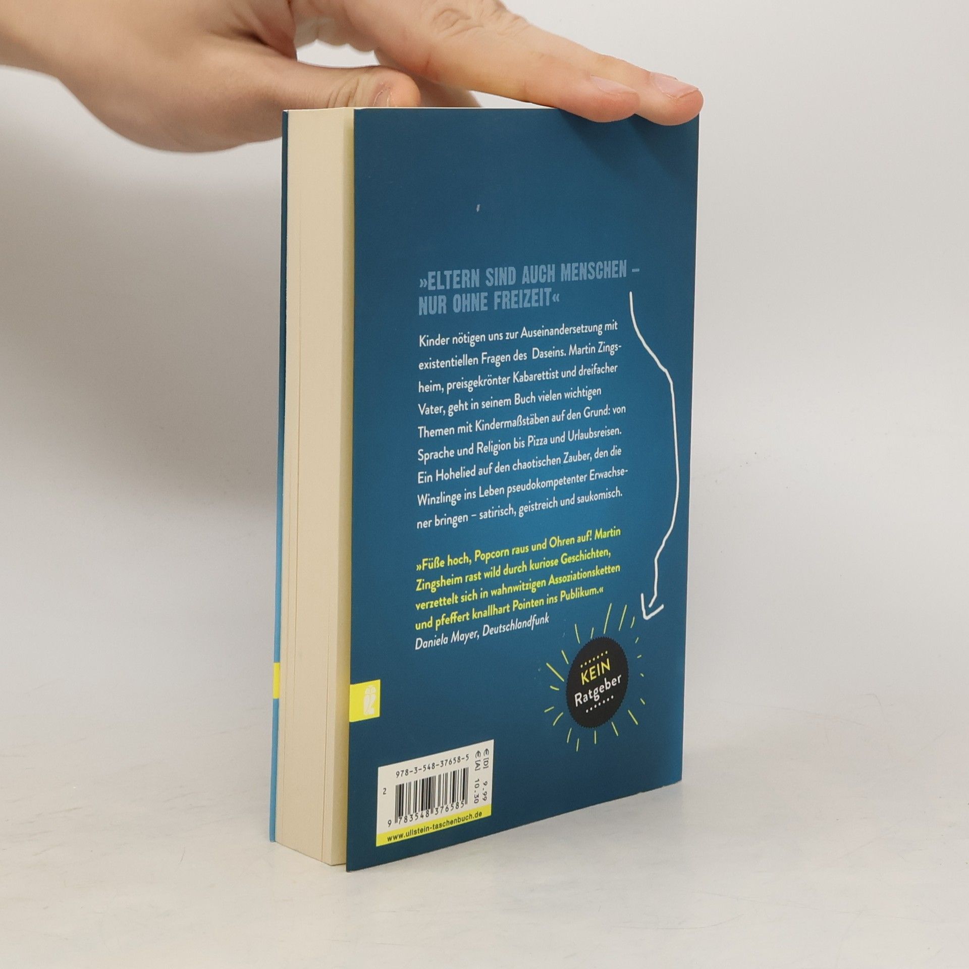 Kinder nötigen einen zur Auseinandersetzung mit existenziellen Fragen des Daseins: Wer bin ich? Wer hat die Erde gemacht? Warum sind nur die eigenen Pupse lustig? In seinem Buch geht der Kabarettist und dreifache Vater Martin Zingsheim vielen wichtigen Themen mit Kindermaßstäben auf den Grund: von Sprache und Religion bis Pizza und Pauschalreisen. Ein satirisches Hohelied auf den chaotischen Zauber, den die Winzlinge ins Leben pseudokompetenter Erwachsener bringen.