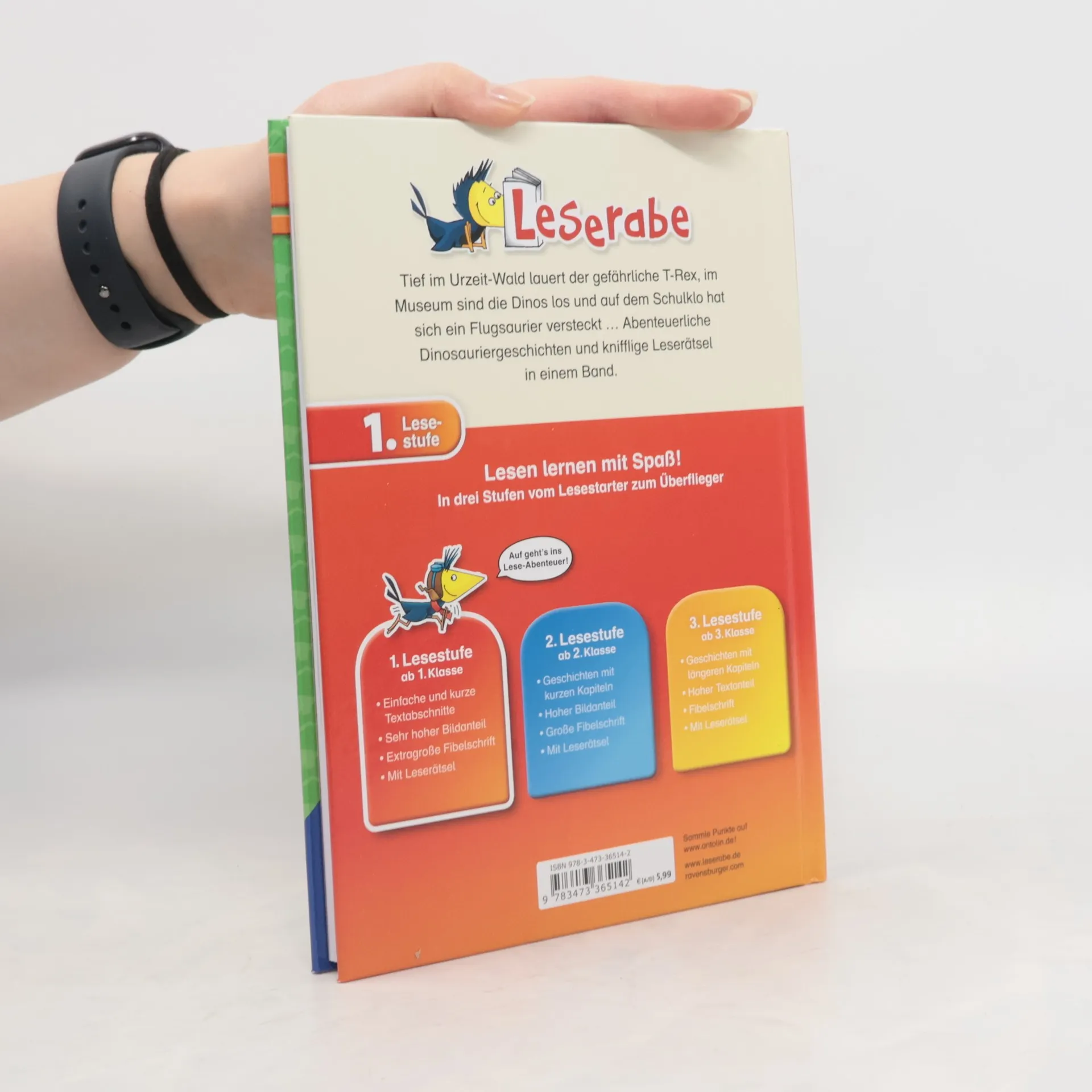 Tief im Urzeit-Wald lauert der gefährliche T-Rex, im Museum sind die Dinos los und auf dem Schulklo hat sich ein Flugsaurier versteckt ... Lesen lernen wie im Flug! Die Kinderbücher der Reihe Leserabe – 1. Lesestufe wurden mit Pädagogen entwickelt und richten sich an Leseanfänger ab der 1. Klasse. Kurze Texte in großer Fibelschrift sichern erste Leseerfolge und steigern die Lesekompetenz von Mädchen und Jungen ab 6 Jahren. Empfohlen von Stiftung Lesen, gelistet bei Antolin.