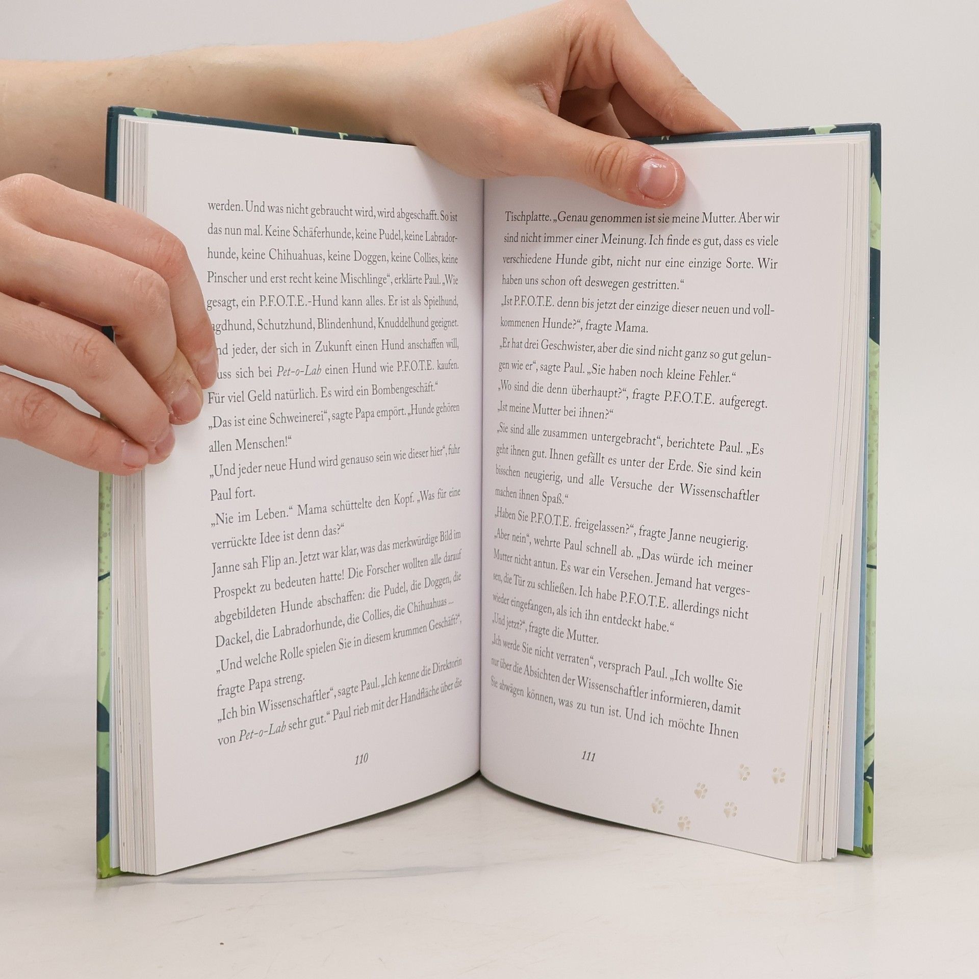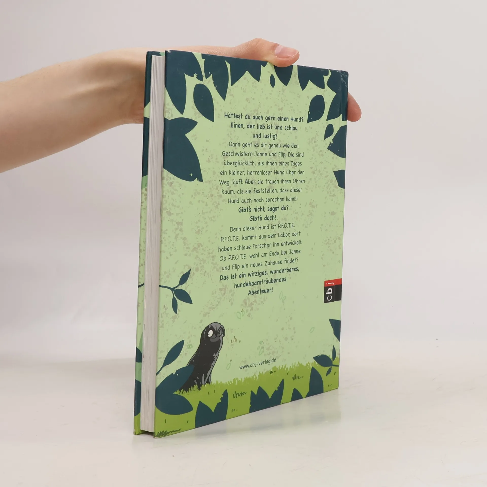Ein tierisch liebenswerter Held Was für eine Sensation: Ein Team von Forschern hat P. F. O. T. E., den vollkommenen Hund, entwickelt, und dazu ein Halsband, das die Hundesprache in die Menschensprache übersetzt! Doch P. F. O. T. E. ist nicht nur sehr intelligent, sondern auch sehr neugierig. Er entkommt aus dem Labor und erkundet begeistert die Welt, die Menschen und seine Artgenossen – die er allerdings ziemlich merkwürdig findet. Was jedoch auf Gegenseitigkeit beruht! Natürlich wollen die Forscher P. F. O. T. E. wiederhaben, und so beginnt ein hundehaarsträubendes Abenteuer. Am Ende entscheidet sich P. F. O. T. E. dafür, bei seiner neuen Familie zu bleiben: als vollkommen unvollkommener Hund, der sich auch ohne Sprachhalsband perfekt mit Mensch und Tier verständigt. Ausstattung: Mit fbg. Illustrationen