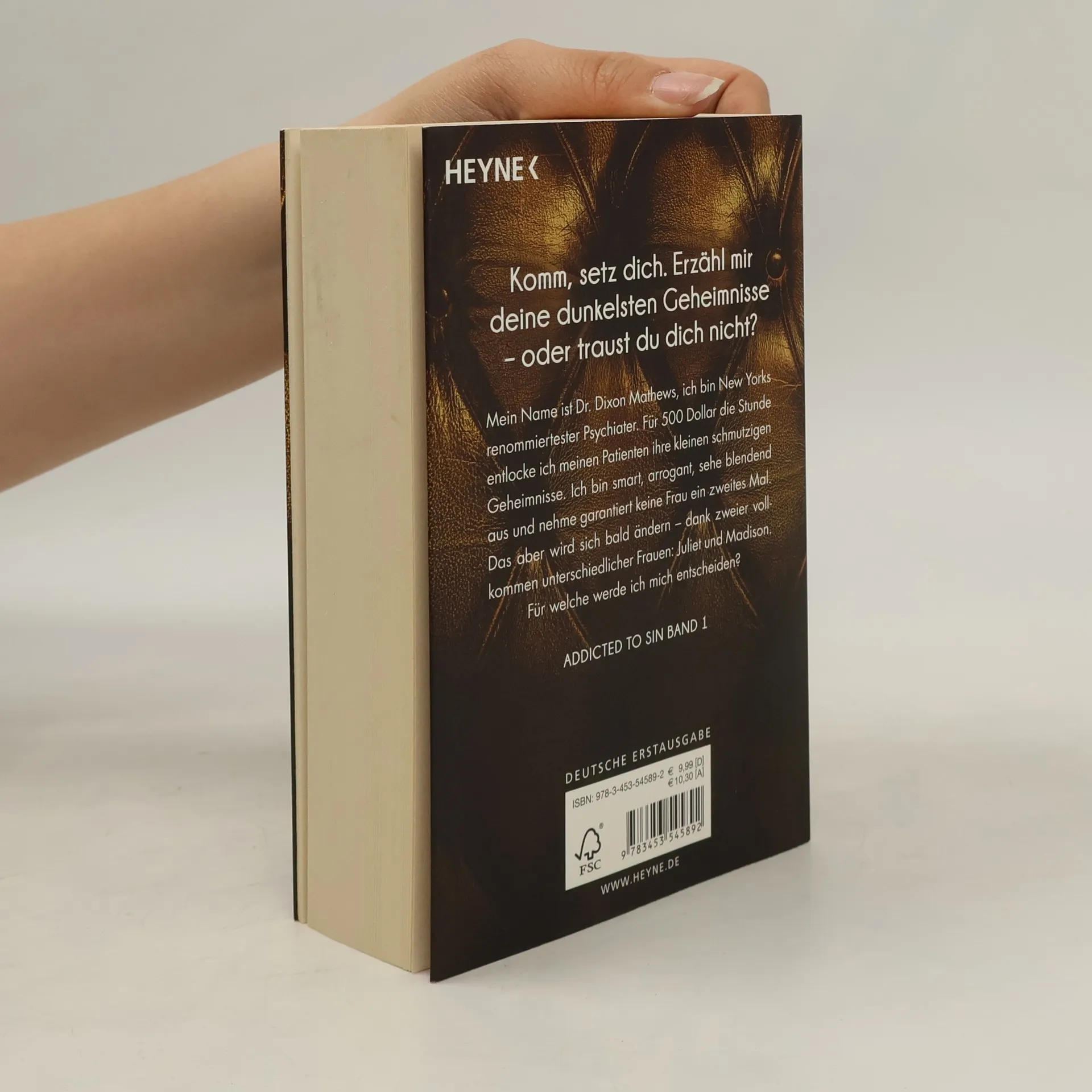 Komm, setz dich. Erzähl mir deine dunkelsten Geheimnisse – oder traust du dich nicht? Mein Name ist Dr. Dixon Mathews, ich bin New Yorks renommiertester Psychiater. Für 500 Dollar die Stunde entlocke ich meinen Patienten ihre kleinen schmutzigen Geheimnisse. Ich bin smart, arrogant, sehe blendend aus und nehme garantiert keine Frau ein zweites Mal. Das aber wird sich bald ändern – dank zweier vollkommen unterschiedlicher Frauen, die doch eines gemeinsam haben: Leidenschaft und Hingabe. Für welche werde ich mich entscheiden?
