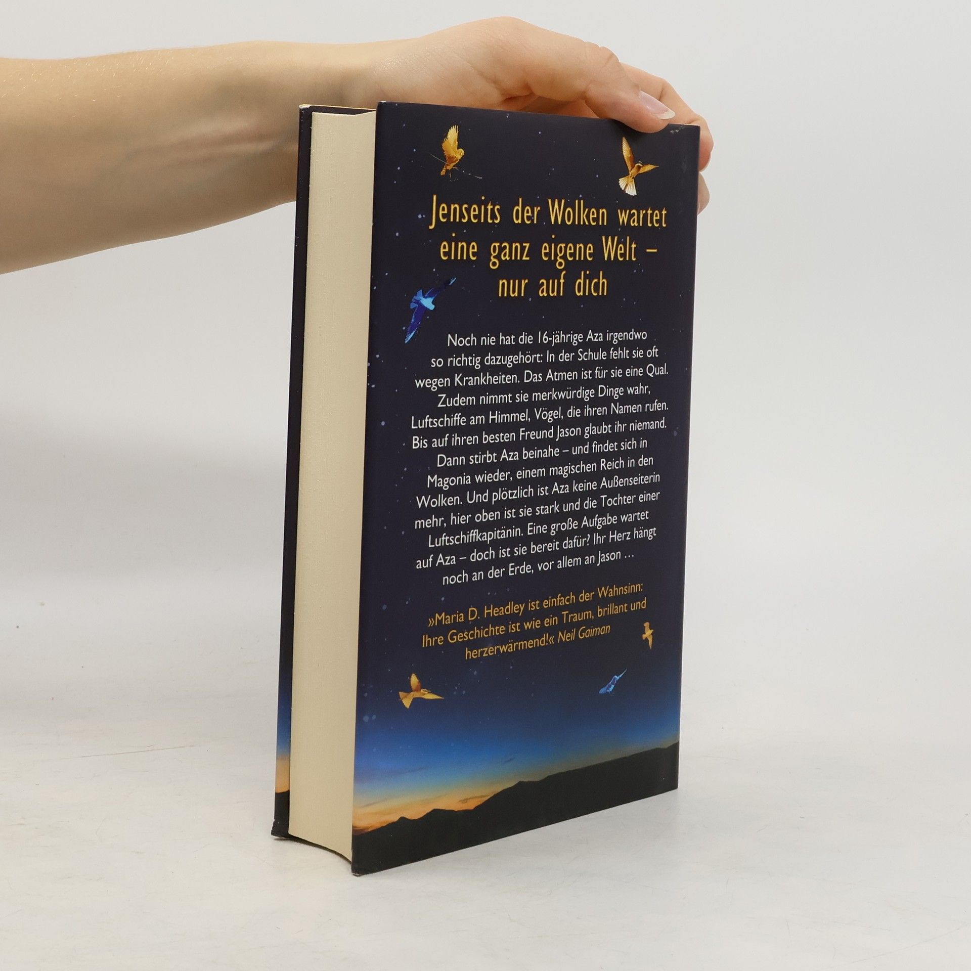 Seit sie klein ist, leidet die 16-jährige Aza an einer seltsamen Lungenkrankheit, die ihr ein normales Leben unmöglich macht. Als sie eines Tages ein Schiff hoch in den Wolken erspäht, schiebt sie das Phänomen auf ihre akute Atemnot. Bis jemand auf dem Schiff ihren Namen ruft ... Nur ein Mensch glaubt ihr diese Geschichte: ihr bester Freund Jason, der immer für sie da war, den sie vielleicht sogar liebt. Aber gerade als sie versucht, sich über die neuen tiefen Gefühle zu Jason klarzuwerden, überstürzen sich die Ereignisse. Aza meint zu ersticken – und findet sich plötzlich in Magonia wieder, dem Reich über den Wolken. Dort ist sie das erste Mal in ihrem Leben nicht mehr krank, sondern stark und magisch begabt. In dem heraufziehenden Kampf zwischen Magonia und Azas alter Heimat, der Erde, liegt das Schicksal aller mit einem Mal in Azas Händen …