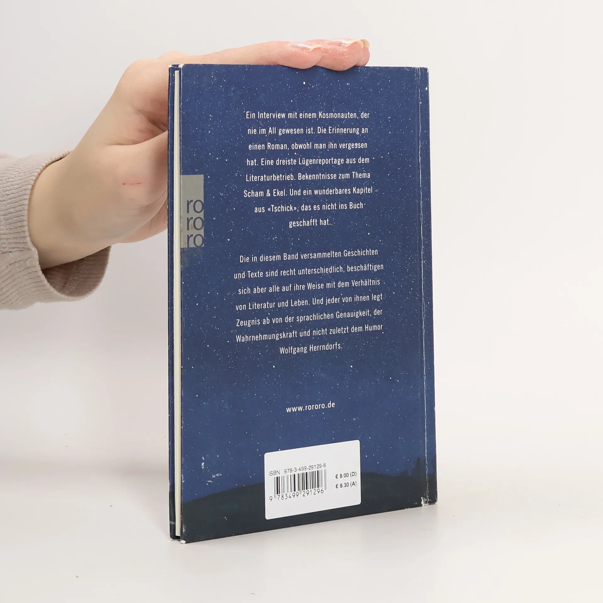 Ein Interview mit einem Kosmonauten, der nie im All gewesen ist. Die Erinnerung an einen Roman, obwohl man ihn vergessen hat. Eine dreiste Lügenreportage aus dem Literaturbetrieb. Bekenntnisse zum Thema Scham & Ekel. Und ein wunderbares Kapitel aus „Tschick“, das es nicht ins Buch geschafft hat.Die in diesem Band versammelten Geschichten und Texte sind recht unterschiedlich, beschäftigen sich aber alle auf ihre Weise mit dem Verhältnis von Literatur und Leben. Und jeder von ihnen legt Zeugnis ab von der sprachlichen Genauigkeit, der Wahrnehmungskraft und nicht zuletzt dem Humor Wolfgang Herrndorfs.