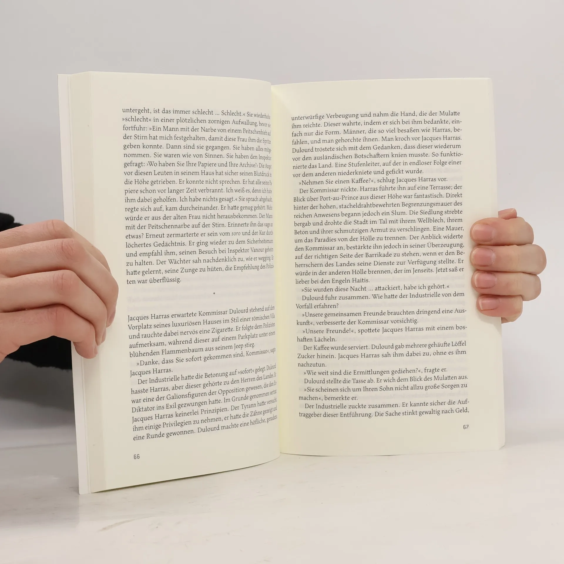 Inspektor Dieuswalwe Azémar hat keine Wahl: Will er nicht aus dem Polizeidienst entlassen werden, muss er sich der Entziehungskur unterziehen, die sein neuer Vorgesetzter ihm verordnet hat. Sie wird zu einem Gang durch die Hölle. Ausgerechnet in diesem geschwächten Zustand wird er in ein Komplott hineingezogen, das sein Leben und das seiner Tochter bedroht. Die Spuren führen zum UN-Militärkontingent in Haiti. Was steckt hinter dem angeblichen Selbstmord eines Generals? Warum wurde der Sohn einer einflussreichen Unternehmerfamilie entführt? Welche Rolle spielt der Bandenchef mit dem seltsamen Namen Raskolnikow bei alldem? Als der Inspektor begreift, wie alles zusammenhängt, ist er ein weiteres Mal auf seine Beretta und seine Reflexe angewiesen.
