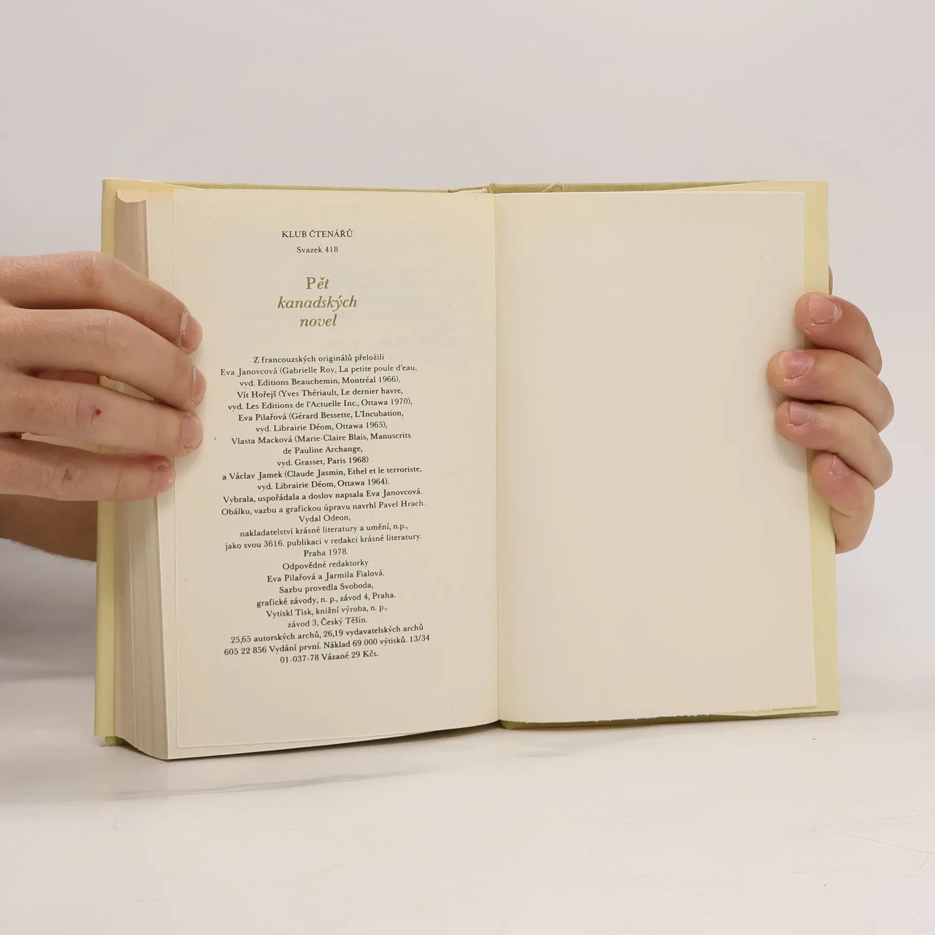 5 kanadských novel z Quebecu: Gabrielle Royová: Malá vodní slípka; Yves Theriault: Poslední přístav; Gerard Bessette: Inkubace; Marie-Claire Blaisová: Rukopisy Pavlíny Archandělské; Claude Jasmin: Ethel a terorista.