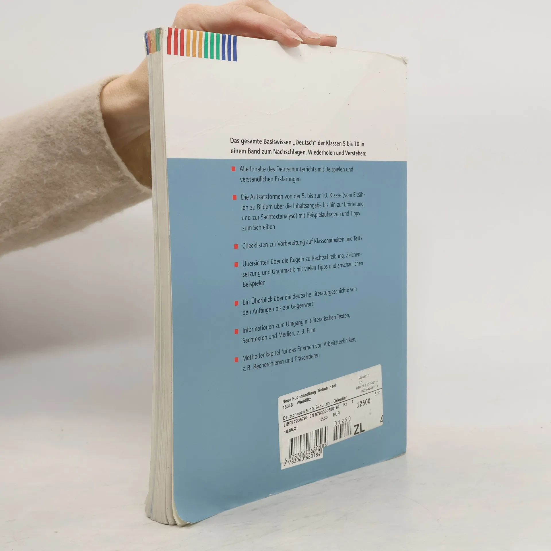 Was Schüler/-innen wirklich wissen müssen: Durchgehend farbig gestaltete Seiten geben einen Überblick zu allen wesentlichen Kenntnissen der Klassen 5-10 - mit Blick auf die Abschlussprüfung. Folgende Lernbereiche werden abgedeckt: Sprechen und Schreiben Umgang mit Texten und Medien Grammatik/Sprachbewusstsein Rechtschreibung, Zeichensetzung Arbeitstechniken und Methoden