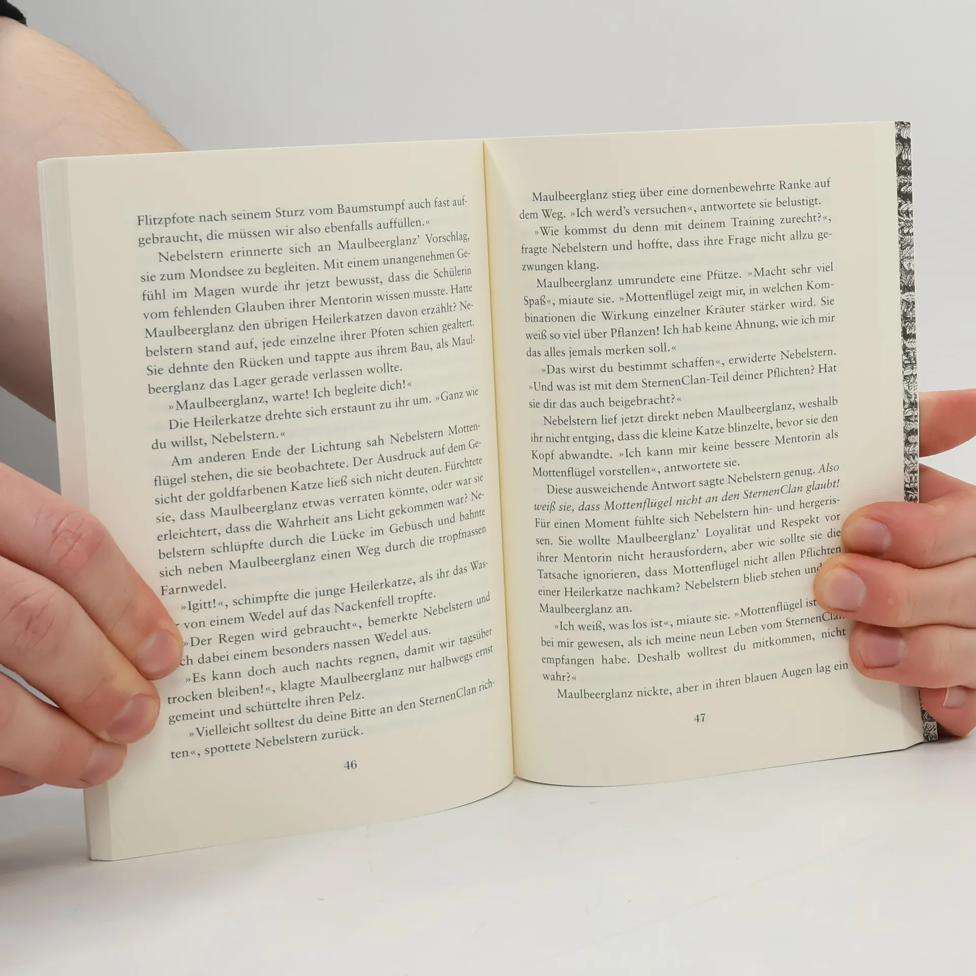 Es ist die Herausforderung ihres Lebens: Nach Leopardensterns Tod wird ihre langjährige Stellvertreterin Nebelfuß die neue Anführerin des FlussClans und erhält den Namen Nebelstern. Doch ihre Führung steht unter keinem guten Omen. Sie entdeckt ein schockierendes Geheimnis des Clans und seiner Heilerin. Durch dieses Wissen ist Nebelsterns Position als Anführerin ist gefährdet, kaum dass sie diese angetreten hat.