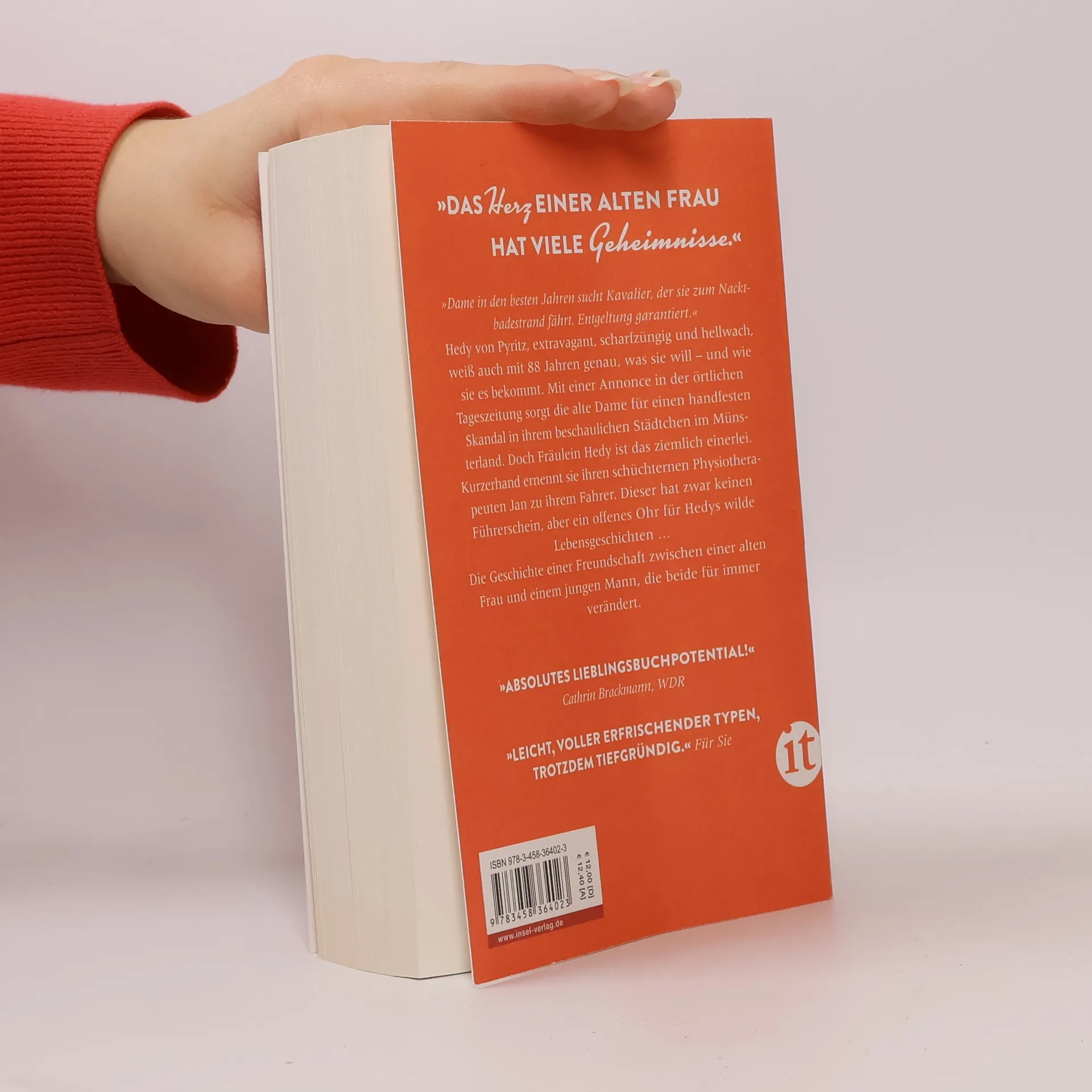 »Dame in den besten Jahren sucht Kavalier, der sie zum Nacktbadestrand fährt. Entgeltung garantiert.« – Eine Annonce in der örtlichen Tageszeitung bringt alles ins Rollen: Hedy von Pyritz, 88 Jahre, diszipliniert, scharfzüngig, eitel. Hellwacher Verstand, trockener Humor, zuweilen übergriffig. Eine alte Dame, die meist im Rollstuhl sitzt, sorgt für einen handfesten Skandal in dem kleinen Städtchen im Münsterland, wo sie herrschaftlich residiert. Aber Fräulein Hedy bleibt unbeirrt: Sie wird ihren Willen durchsetzen! Und findet in ihrem schüchternen, sanften Physiotherapeuten Jan einen Mitstreiter. Vielmehr nötigt sie ihn förmlich dazu. Der junge Mann wird sie fahren. Basta! Jan hat keinen Führerschein, dafür aber eine nie behandelte Lese-Rechtschreibschwäche, so dass Hedy den Unterricht übernimmt und sich schon bald eine ungewöhnliche Beziehung zwischen den beiden festigt. So vertraut sie ihm nach und nach die Geheimnisse ihrer schillernden Vergangenheit an und verändert damit auf ungeahnte Weise seine Zukunft ... Andreas Izquierdo erzählt in seinem Roman die Geschichte einer Freundschaft zwischen einer alten Frau und einem jungen Mann, die beide für immer verändert – eine Geschichte, die federleicht beginnt und sich dann zu einem wuchtigen, mitreißenden Drama entwickelt.