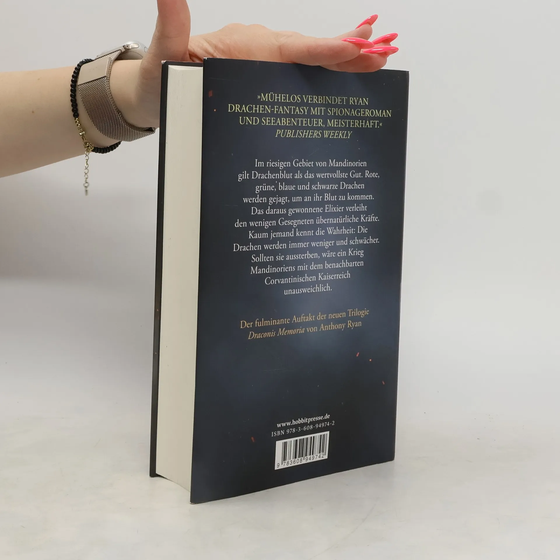 Im riesigen Gebiet von Mandinorien gilt Drachenblut als das wertvollste Gut. Rote, grüne, blaue und schwarze Drachen werden gejagt, um an ihr Blut zu kommen. Das daraus gewonnene Elixier verleiht den wenigen Gesegneten übernatürliche Kräfte. Doch das letzte Zeitalter der Drachen neigt sich seinem Ende zu. Kaum jemand kennt die Wahrheit: Die Drachen werden immer weniger und schwächer. Sollten sie aussterben, wäre ein Krieg Mandinoriens mit dem benachbarten Corvantinischen Kaiserreich unausweichlich. Alle Hoffnung des Drachenblut-Syndikats beruht auf einem Gerücht, nach dem es eine weitere Drachenart gibt, die weitaus mächtiger ist als alle anderen. Claydon Torcreek, ein Dieb und unregistrierter Blutgesegneter, wird von der obersten Herrschergilde in das wilde, unerforschte Inland geschickt, um einem Geschöpf nachzuspüren, das er selbst für reine Legende hält: dem weißen Drachen. »Mühelos verbindet Ryan Drachen- Fantasy mit Spionageroman und Seeabenteuer, meisterhaft und glaubwürdig.« Publishers Weekly