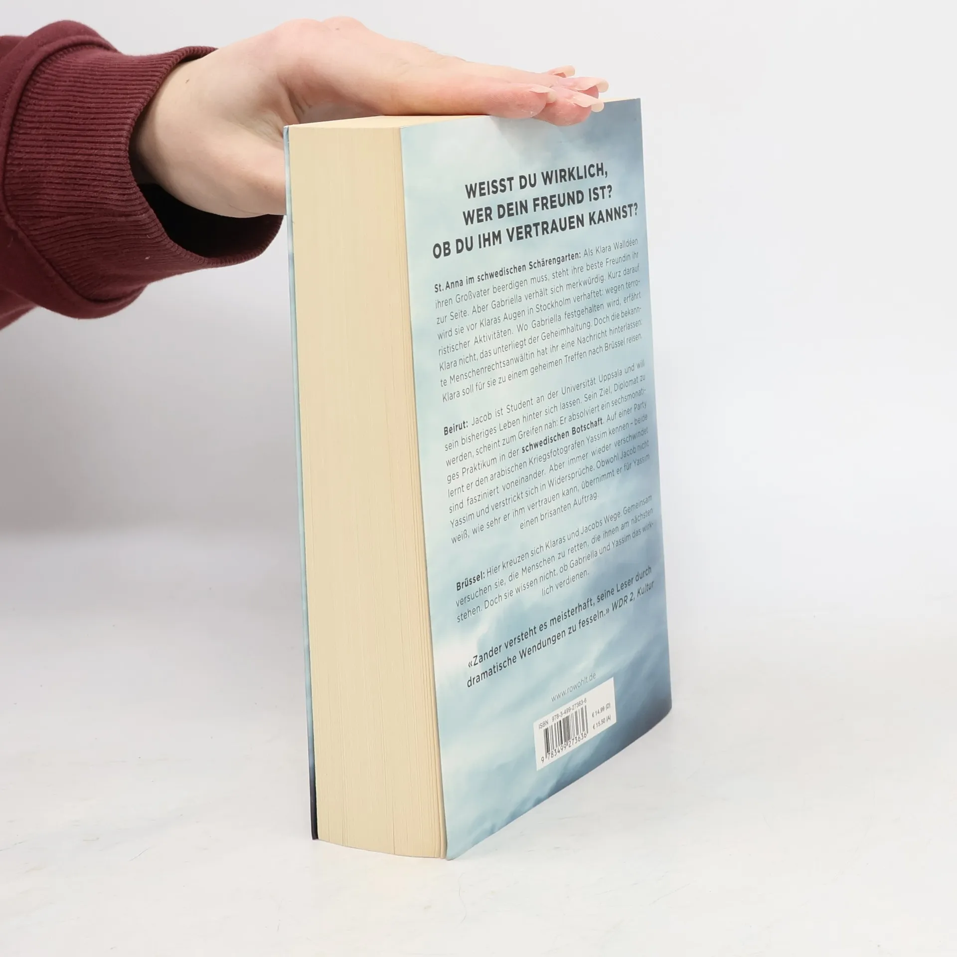 Weißt Du wirklich, wer dein Freund ist? Ob du ihm vertrauen kannst? St. Anna im schwedischen Schärengarten: Als Klara Walldéen ihren Großvater beerdigen muss, steht ihre beste Freundin ihr zur Seite. Aber Gabriella verhält sich merkwürdig. Kurz darauf wird sie vor Klaras Augen in Stockholm verhaftet: wegen terroristischer Aktivitäten. Wo Gabriella festgehalten wird, erfährt Klara nicht, das unterliegt der Geheimhaltung. Doch die bekannte Menschenrechtsanwältin hat ihr eine Nachricht hinterlassen: Klara soll für sie zu einem geheimen Treffen nach Brüssel reisen. Beirut: Jacob ist Student an der Universität Uppsala und will sein bisheriges Leben hinter sich lassen. Sein Ziel, Diplomat zu werden, scheint zum Greifen nah: Er absolviert ein sechsmonatiges Praktikum in der schwedischen Botschaft. Auf einer Party lernt er den arabischen Kriegsfotografen Yassim kennen – beide sind fasziniert voneinander. Aber immer wieder verschwindet Yassim und verstrickt sich in Widersprüche. Obwohl Jacob nicht weiß, wie sehr er ihm vertrauen kann, übernimmt er für Yassim einen brisanten Auftrag. Brüssel: Hier kreuzen sich Klaras und Jacobs Wege. Gemeinsam versuchen sie, die Menschen zu retten, die ihnen am nächsten stehen. Doch sie wissen nicht, ob Gabriella und Yassim das wirklich verdienen.