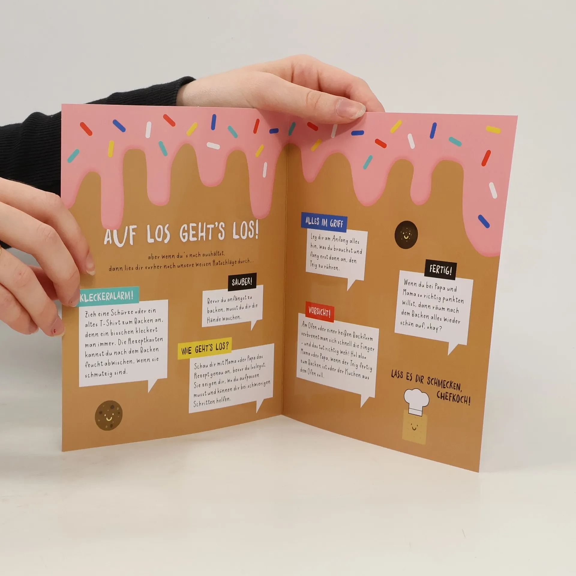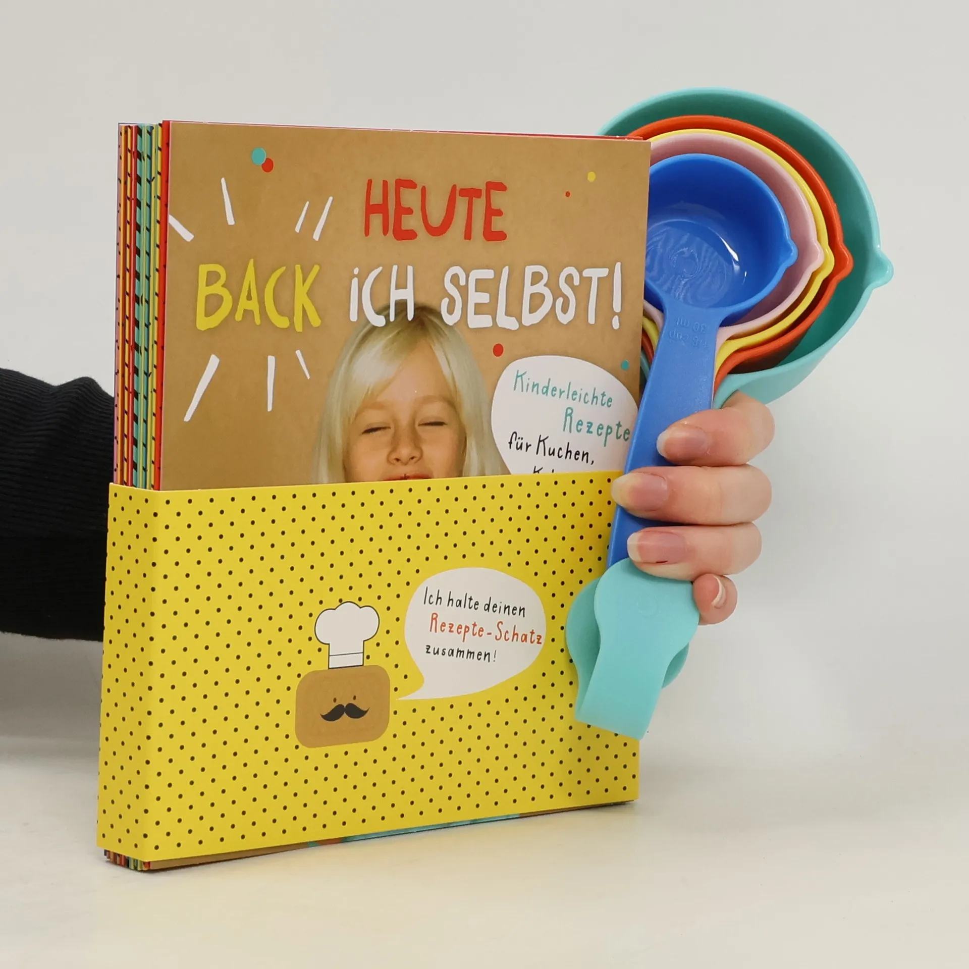 Kinderleichter Backerfolg im Set: Mit bunten Bechern und abwischbaren Rezeptkarten nach Bildern backen