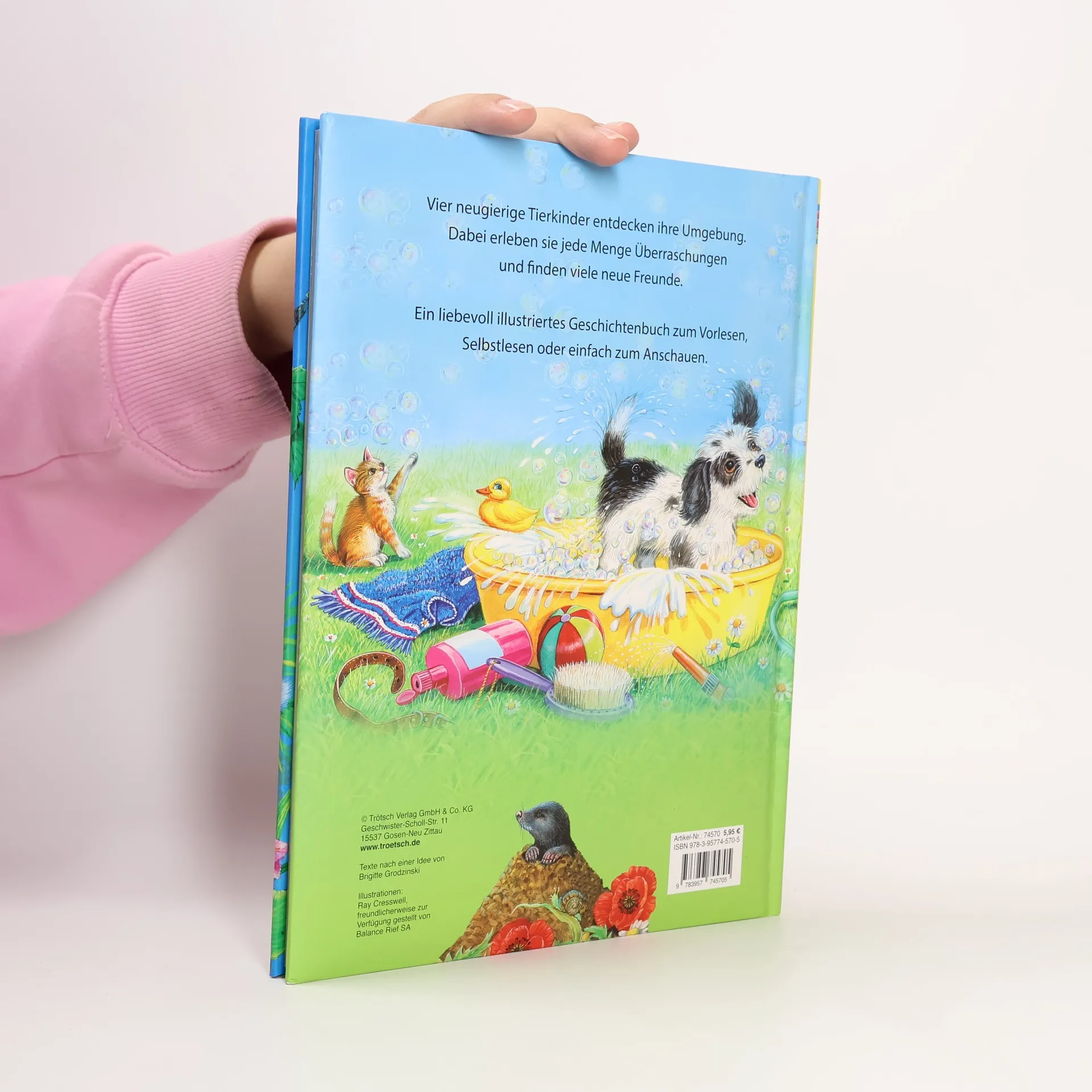 Vier neugierige Tierkinder entdecken ihre Umgebung. Dabei erleben sie jede Menge Überraschendes und finden viele neue Freunde. Ein liebevoll illustriertes Geschichtenbuch zum Vorlesen oder Selbstlesen.
