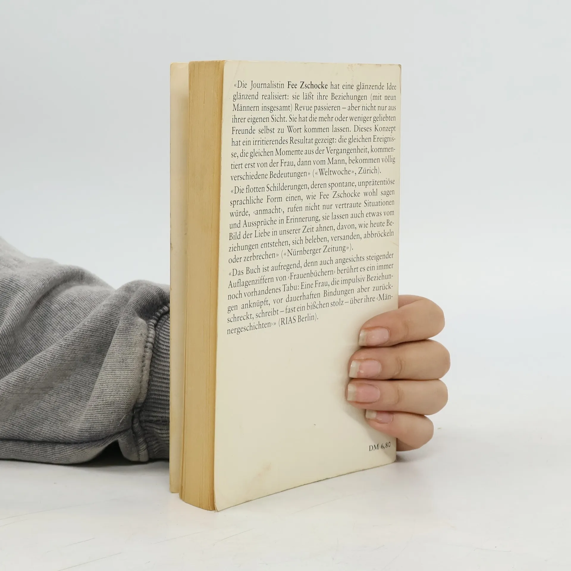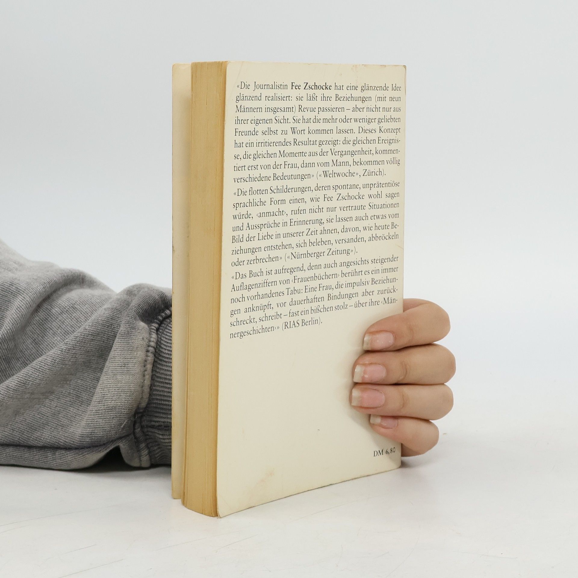 In diesen »Männergeschichten« lässt die gefeierte Autorin Fee Zschocke ihre vergangenen Beziehungen Revue passieren – zuerst aus ihrer eigenen Sicht, dann aus der Sicht der ehemaligen Liebhaber. »Eine Art doppelter Buchführung: Nicht nur Fee Zschocke darf einen Blick zurück werfen, auch die Geliebten von einst kommen zu Wort«, schrieb der Playboy. Damit die Schilderungen nicht zu einer Aufrechnung werden, hat die Autorin ihre Version zuerst geschrieben. Erst nach dem Tonband-Interview mit dem Partner konnte dieser dann ihre Fassung lesen – wenn er wollte. So entstanden unterschiedliche Geschichten, die klarmachen, wie verschieden wir Liebesbeziehungen erleben – und auch, wie sehr wir dazu neigen, unangenehme Erlebnisse zu verdrängen. Die Erinnerung verfälscht, rückt zurecht, löscht aus, schönt oder lässt nur das Negative zu. „Die Journalistin Fee Zschocke hat eine glänzende Idee glänzend realisiert: Sie läßt ihre Beziehungen [....] Revue passieren – aber nicht nur aus ihrer eigenen Sicht.« – Weltwoche Jovana Reisingers Vorwort über die heilende Kraft der Entenherzen bei Liebeskummer rundet die Neuausgabe dieses Klassikers über die Irrungen und Wirrungen moderner Beziehungen ab.