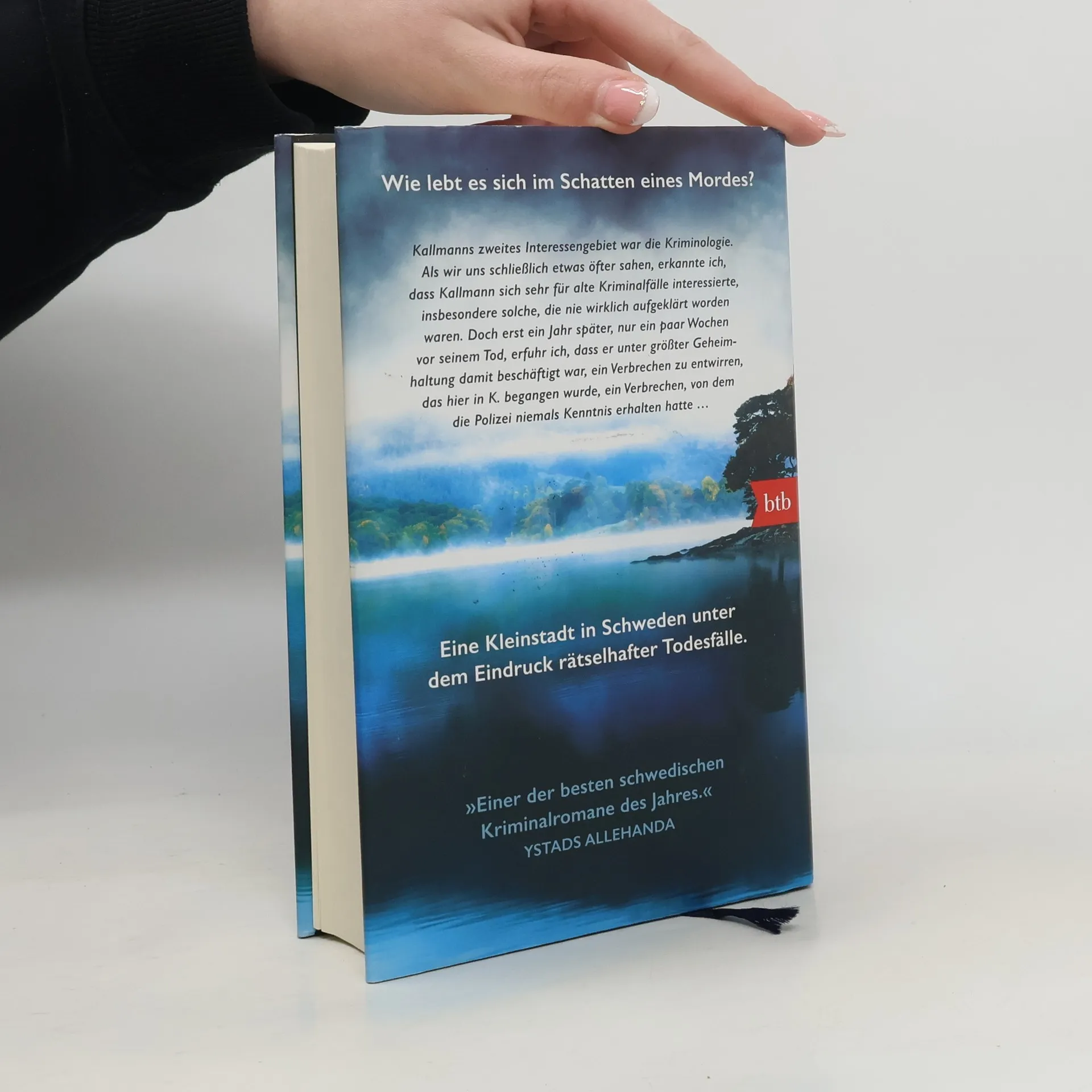 Wie lebt es sich im Schatten eines Mordes? Wer war Eugen Kallmann? Warum musste der beliebte Gesamtschullehrer in der beschaulichen schwedischen Kleinstadt sterben? Wirklich nur ein Unglücksfall, wie die Polizei behauptet? Als sein Nachfolger im Schwedischunterricht, Leon Berger, nach der langen Sommerpause seinen Dienst antritt, findet er im Pult unter Kallmanns Sachen eine Reihe von Tagebüchern, die sich als eine Mischung aus Dichtung und Wahrheit entpuppen und ihn schon bald daran zweifeln lassen, dass sein Vorgänger tatsächlich eines natürlichen Todes gestorben ist. Denn in seinen Einträgen behauptet Kallmann unter anderem, er würde die Gabe besitzen, in den Augen anderer Menschen erkennen zu können, ob sie gemordet haben. Und er scheint in den letzten Monaten seines Lebens einem nie entdeckten und nie gesühnten Verbrechen auf der Spur gewesen zu sein. Leon Berger will den Fall Kallmann lösen – seine privaten Ermittlungen setzen etwas in Gang, das schließlich die ganze Kleinstadt erschüttert.