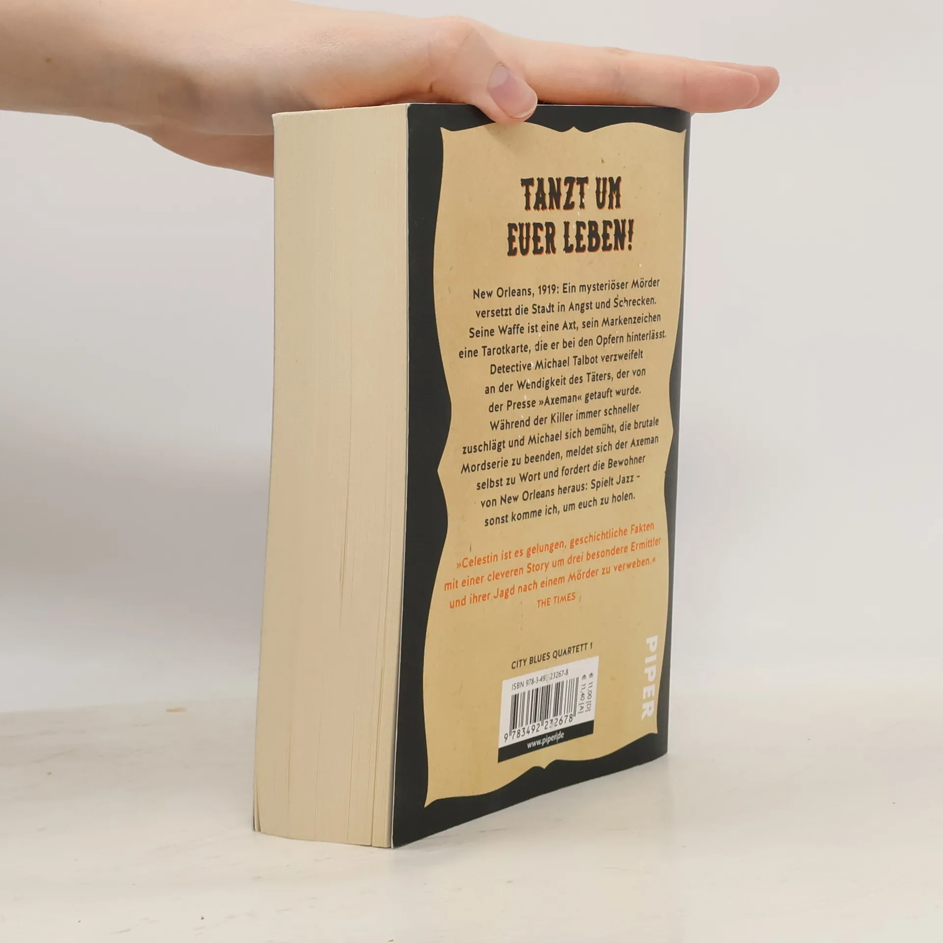 New Orleans, 1919: Der mysteriöse »Axeman-Mörder« versetzt die Stadt in Angst und Schrecken. Seine Waffe ist eine Axt, sein Markenzeichen Tarotkarten, die er bei seinen Opfern hinterlässt. Detective Michael Talbot ist mit dem Fall betraut und verzweifelt an der Wendigkeit des Killers. Der ehemalige Polizist Luca D'Andrea sucht ebenfalls nach dem Axeman – im Auftrag der Mafia. Und Ida, die Sekretärin der Pinkerton Detektivagentur, stolpert zufällig über einen Hinweis, der sie und ihren besten Freund Louis Armstrong mitten in den Fall hineinzieht. Als Michael, Luca, Ida und Louis der Identität des Axeman immer näherkommen, fordert der Killer die Bewohner von New Orleans heraus: Spielt Jazz – sonst komme ich, um euch zu holen. Ray Celestin ist ein brillanter Debütroman gelungen, der sich in einer Mischung aus Fakten und Fiktion um eine der spannendsten und geheimnisvollsten Mordfälle der nordamerikanischen Geschichte rankt.