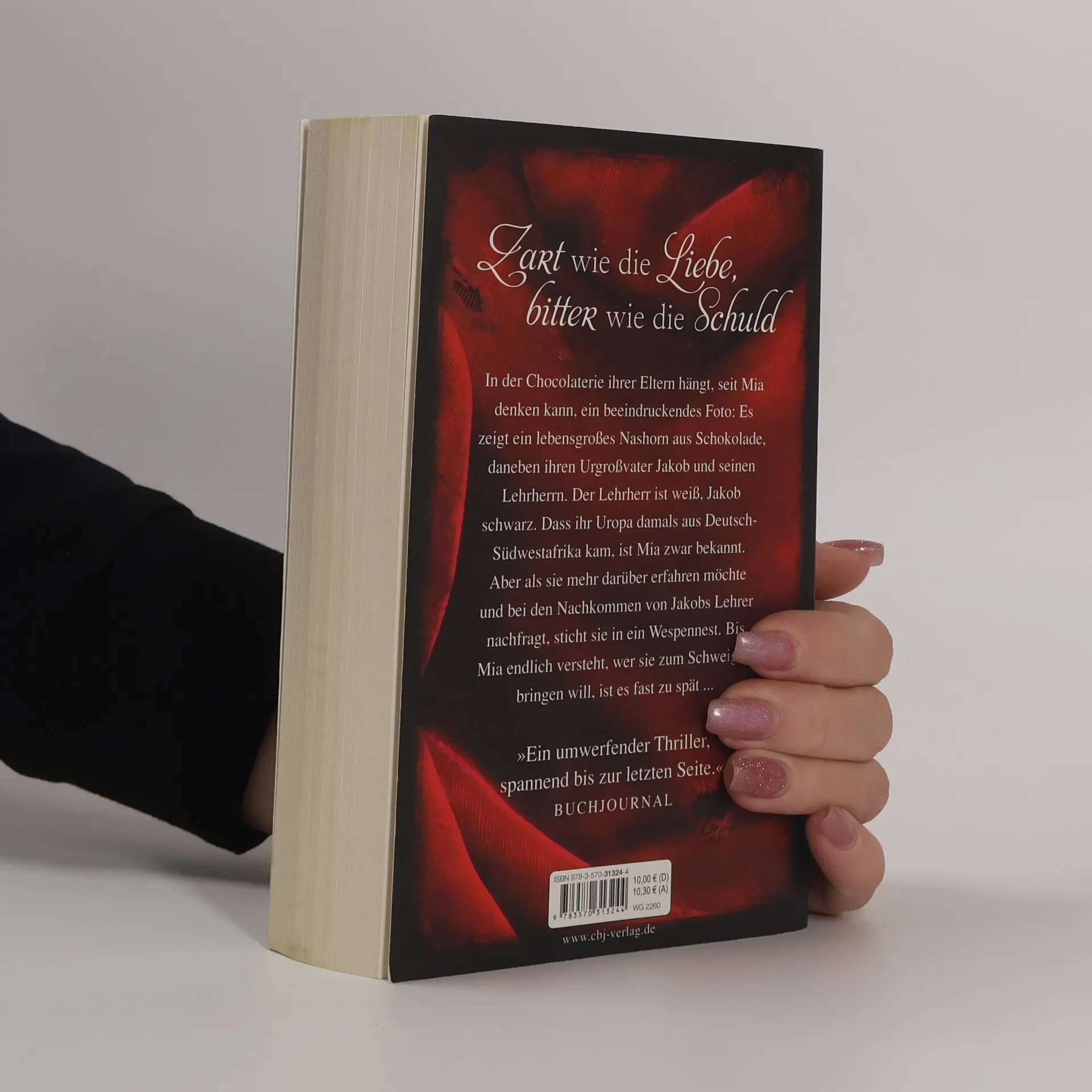 In "Zart wie die Liebe, bitter wie die Schuld" entdeckt Mia die Geschichte ihrer Familie, die mit einem schokoladenen Nashorn verbunden ist. Auf der Suche nach der Vergangenheit stößt sie auf Geheimnisse und Widerstand, was sie in eine gefährliche Situation bringt, bevor sie die Wahrheit begreift.