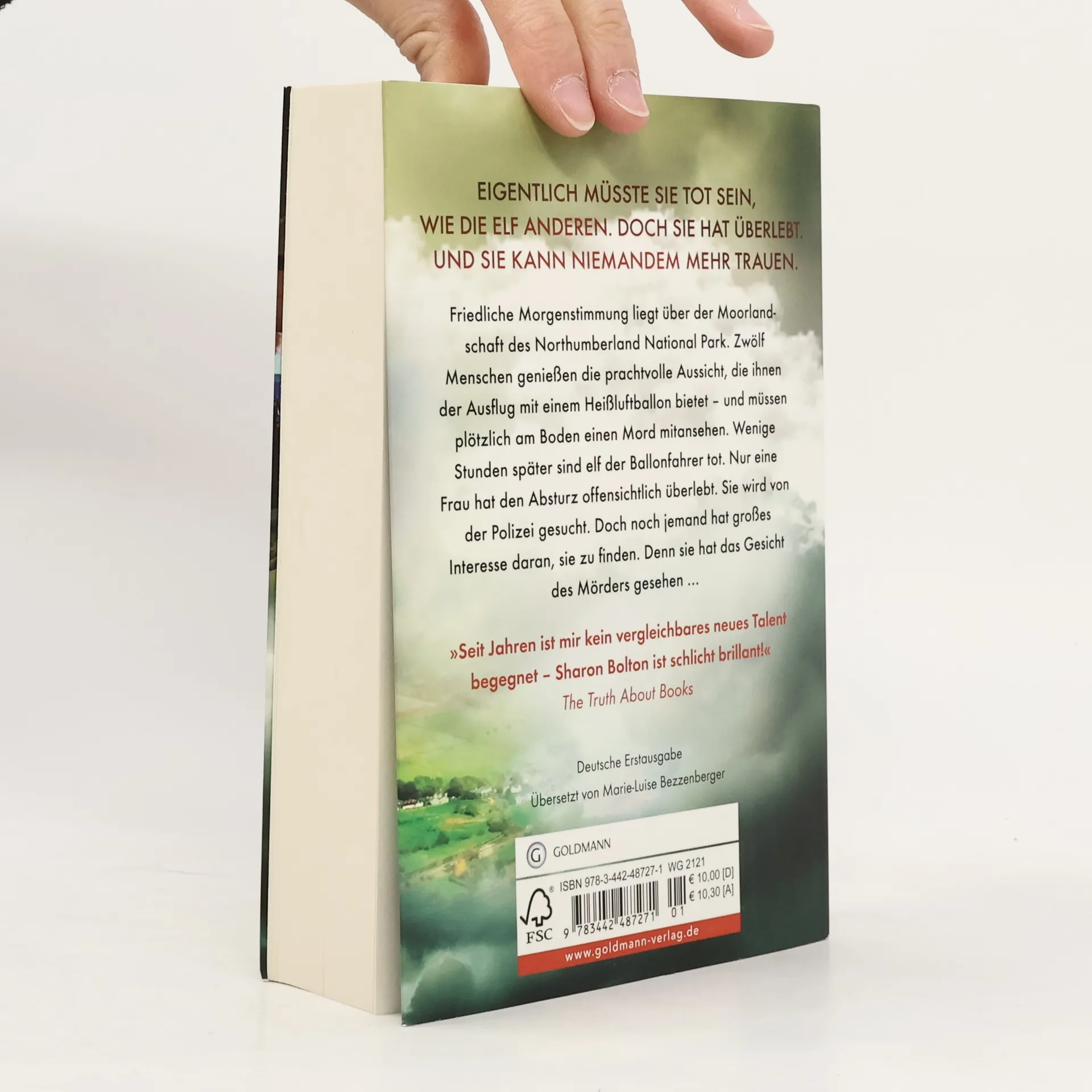 »Sharon Bolton ist die weibliche Ausgabe von Simon Beckett.« www. denglers-buchkritik. de Atmosphärische Handlung, vielschichtige Charaktere und mörderische Spannung – das sind Boltons Markenzeichen.Friedliche Morgenstimmung liegt über den Hügeln und Wäldern nahe der schottischen Grenze. Zwölf Menschen genießen die prachtvolle Aussicht, die ihnen der Ausflug mit einem Heißluftballon bietet – und müssen plötzlich mit ansehen, wie am Boden eine Frau erschlagen wird. Als der Mörder von seinem Opfer ablässt und den Blick gen Himmel richtet, steht das Schicksal dieser Menschen auf Messers Schneide. Der Mann schultert sein Gewehr und nimmt die Verfolgung auf. Eine grausame Jagd beginnt. Am Ende wird nur eine Zeugin entkommen. Sie kennt das Gesicht des Mörders. Und er kennt ihres. Nun läuft sie um ihr Leben.