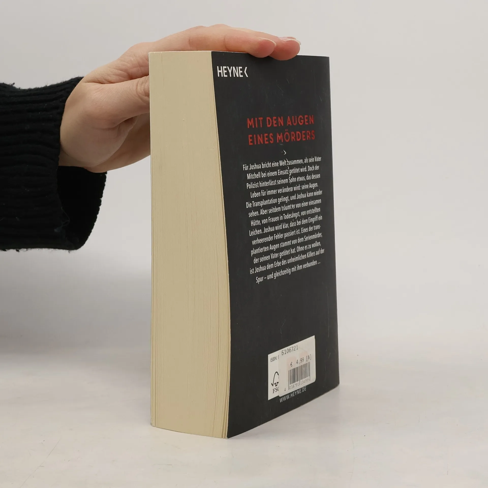 Für Joshua bricht eine Welt zusammen, als sein Vater Mitchell bei einem Einsatz getötet wird. Doch der Polizist hinterlässt seinem Sohn etwas, das dessen Leben für immer verändern wird: seine Augen. Die Transplantation gelingt, und Joshua kann wieder sehen. Aber seitdem träumt er von einer einsamen Hütte, von Frauen in Todesangst, von entstellten Leichen. Joshua wird klar, dass bei dem Eingriff ein verheerender Fehler passiert ist. Eines der transplantierten Augen stammt von dem Serienmörder, der seinen Vater ermordet hat. Ohne es zu wollen, ist Joshua dem Erbe des unheimlichen Killers auf der Spur … und gleichzeitig mit ihm verbunden …