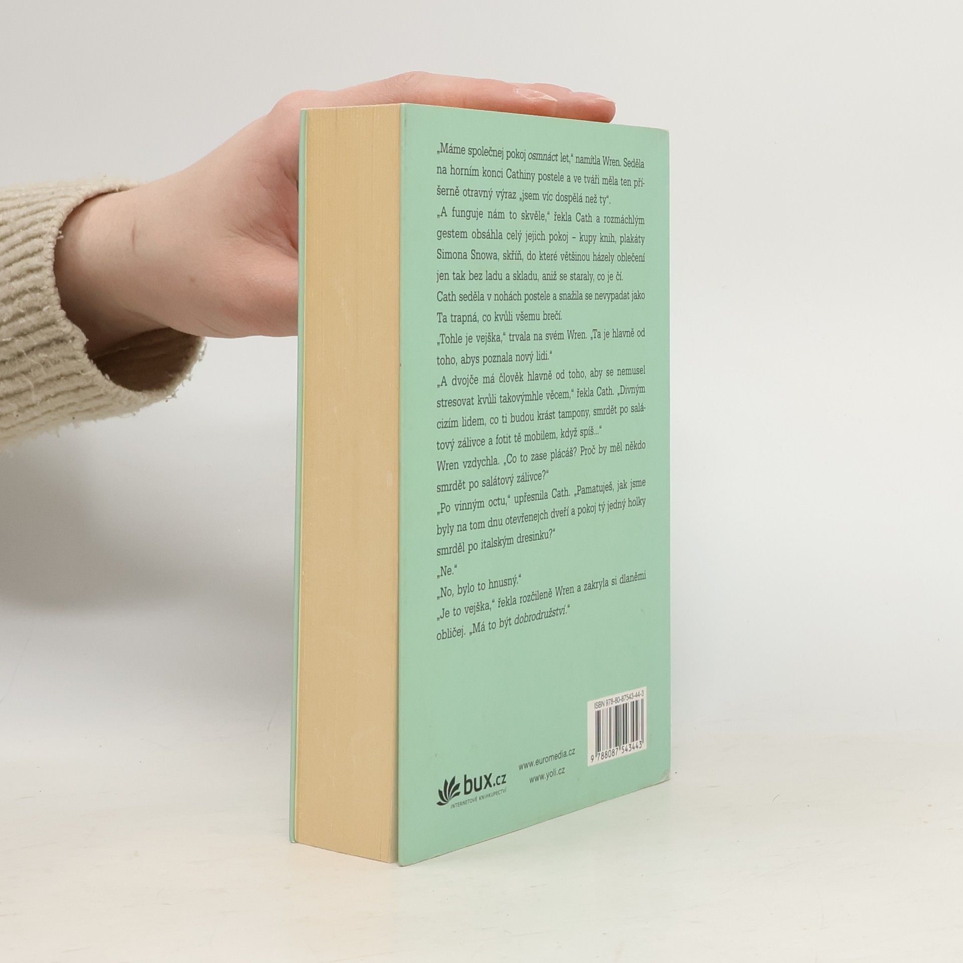 Ačkoli jsou až na fyzickou podobu každá úplně jiná, Cath odjakživa sdílela se svým dvojčetem Wren všechno: oblečení, trápení s rodiči i vášeň pro knížky o mladém kouzelníkovi Simonu Snowovi. Jenomže teď obě nastupují na vysokou školu a Wren poprvé nechala Cath na holičkách – nechce s ní bydlet na koleji. Potíž je v tom, že Cath na rozdíl od sestry není právě společensky zdatná. Jejím přirozeným prostředím je internet, kde se nemusí nikomu dívat z očí do očí a kde tisíce fanoušků nadšeně čtou její povídky ze světa Simona Snowa. A to je svět na hony vzdálený bludišti školních budov, v němž číhají nástrahy v podobě všech možných fobií, děsivých spolubydlících s neodbytnými kamarády a profesorek tvůrčího psaní, které o fanfikcích nechtějí ani slyšet. Co ale Cath zbývá než zachovat klid a nedat se?