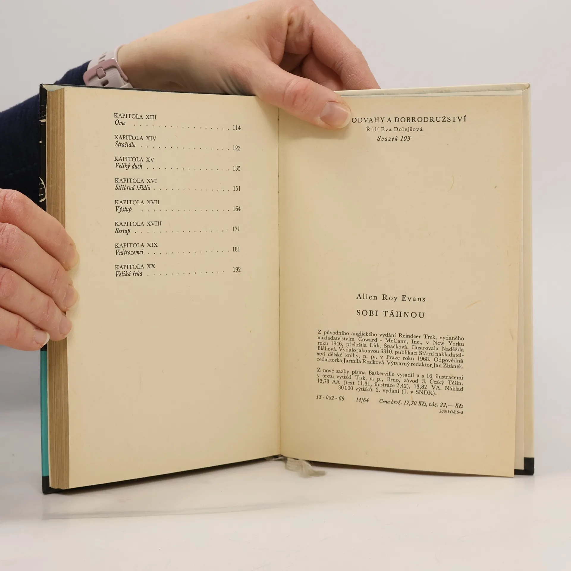 Poutavý příběh Laponců a Eskymáků z Dalekého severu, o jejich každodením boji s krutou severskou přírodou, s bouřemi, vánicemi, mrazy, vlky a nepřátelskými kmeny. - Román vyprávějící o dlouhé a vysilující cestě skupiny laponských a eskymáckých pastevců, kteří na popud "bílých náčelníků" převádějí z Bucklandského zálivu na Aljašce podél severního pobřeží stádo 3000 sobů, aby eskymáckýmkmenům na sever od Velkého Medvědího jezera, které jsou vydány pravidelně se opakujícímu hladomoru, byla dána trvalá zásoba potravy. Tato cesta dlouhá 1800 mil byla spojena s nesčetnými překážkami, které stavěla do cesty krutáseverská příroda a jen neuvěřitelnou vytrvalostí, odvahou a nezlomnou vůlí skupiny pastevců se ji po pěti letech podařilo dokončit. Vyprávění prosté, střízlivé, přesto však strhující. Identifikační číslo tohoto vydání knihy je 13-082-68 .