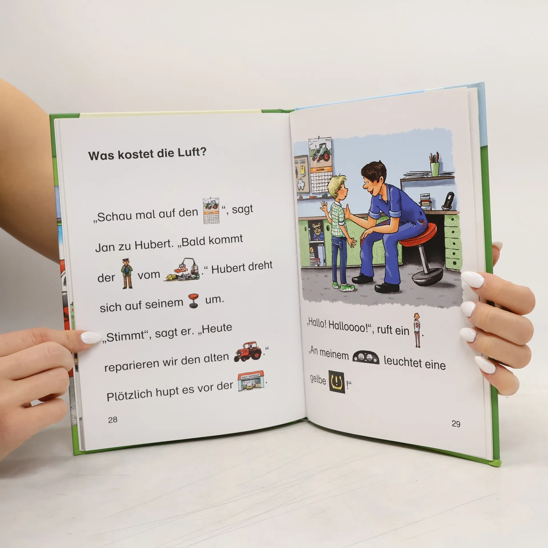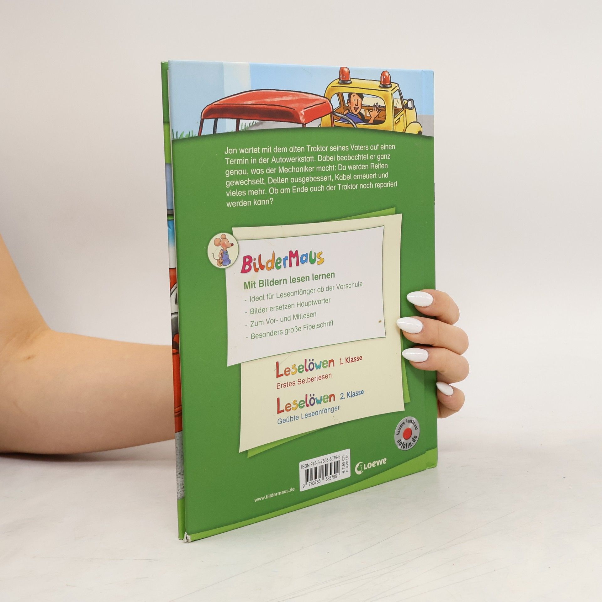 Das Buch ist bei deiner Buchhandlung vor Ort und bei vielen Online-Buchshops erhältlich! Jan wartet mit dem alten Traktor seines Vaters auf einen Termin in der Autowerkstatt. Dabei beobachtet er ganz genau, was der Mechaniker macht: Da werden Reifen gewechselt, Dellen ausgebessert, Kabel erneuert und vieles mehr. Ob am Ende auch der Traktor noch repariert werden kann? Mit der Reihe Bildermaus können Kinder schon ab 5 Jahren (Vorschule) spielerisch lesen lernen mit Bildern: Jedes Hauptwort ist durch ein Bild ersetzt. Schenken Sie Ihrem Kind ein Bildermaus -Buch und legen Sie damit den Grundstein zum erfolgreichen Lesenlernen. Spannende Geschichte für Auto-Fans Bewährtes Konzept: Seit über 25 Jahren begleitet die Bildermaus Kinder erfolgreich auf dem Weg zum Lesenlernen Über 4 Millionen verkaufte Exemplare in Deutschland, Österreich und der Schweiz Ideal für Leseanfänger ab der Vorschule, zum Vor- und Mitlesen Von Pädagogen mitentwickelt und empfohlen Bilder ersetzen Wörter Abwechslungsreiche und spannende Geschichten Jedes Buch ist genau auf die Interessen von Kindern im Vorschulalter ausgerichtet Einfache, kurze Sätze in großer Fibelschrift unterstützen optimal den Leselern-Prozess Abwechslungsreiche Quizfragen auf Antolin steigern die Lesemotivation