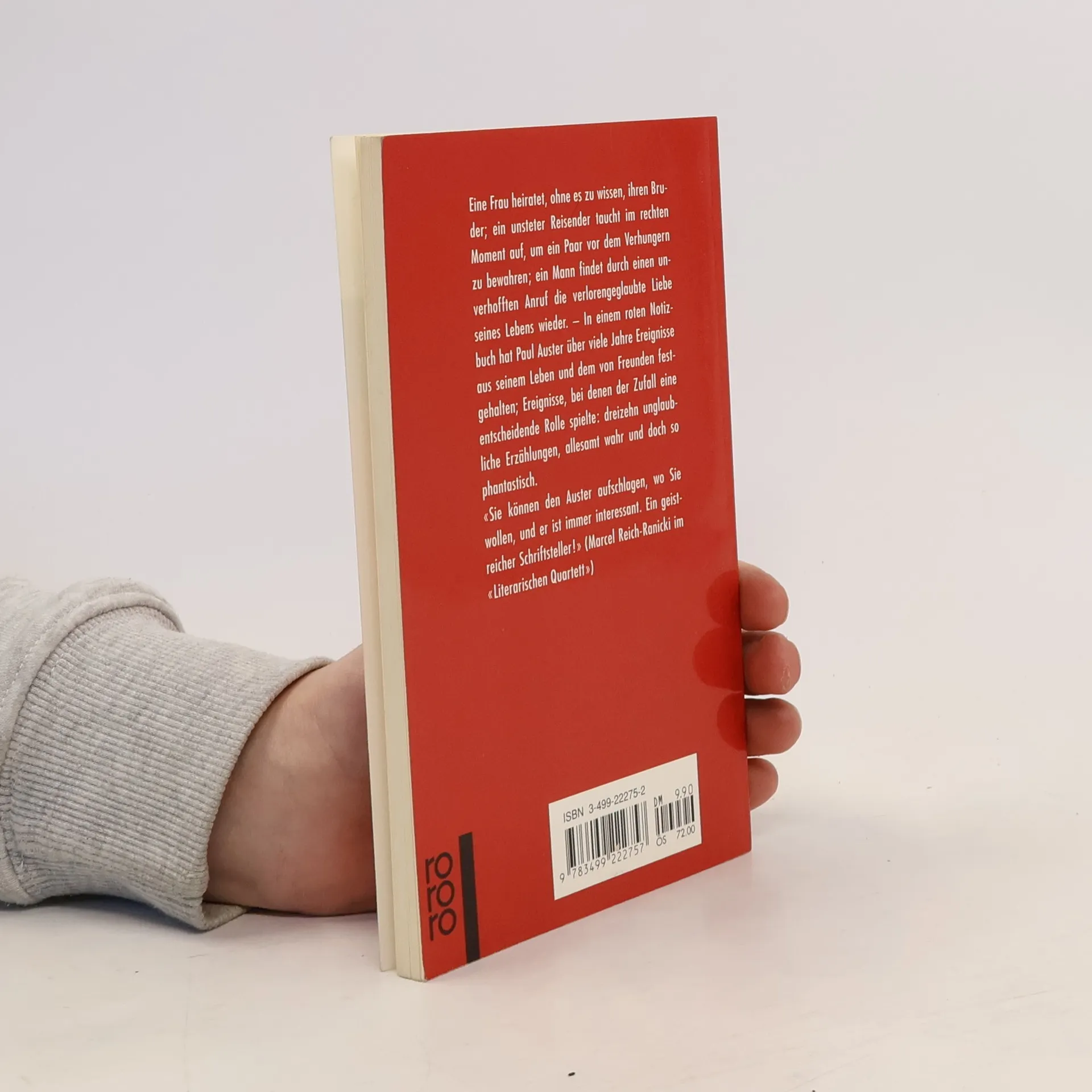 Dies ist Paul Austers legendäres „Red Notebook“ von 1995, erstmals vollständig auf Deutsch, in bibliophiler Ausstattung. Wie wirkt der Zufall auf unser Leben, und was steckt hinter dieser seltsamen Macht? Diese Fragen durchziehen Paul Austers gesamtes schriftstellerisches Werk. In einem roten Notizbuch hat er über die Jahre wahre Geschichten aus seinem Leben und aus dem von Freunden und Bekannten festgehalten, in denen die unvorhersehbare, wechselhafte, ja bisweilen paradoxe Natur der menschlichen Erfahrung deutlich zutage tritt: fünfundzwanzig unglaubliche Erzählungen, wahr und doch so phantastisch, dass man sie am liebsten einer durchtriebenen Schriftstellerphantasie zuschreiben möchte, um sich nicht von ihrer Magie erschrecken zu lassen. Ein verbrannter Zwiebelkuchen, eine falsche Telefonnummer, ein vom Blitz getroffener Junge, ein in einem Pariser Hotelzimmer vergessener Zettel - sie und anderes lösen merkwürdige Ereignisse aus und führen nebenbei zu einer einzigartigen Ars poetica, einem literarischen Manifest, das in die unveränderliche Form reinsten Erzählens gebracht wurde.