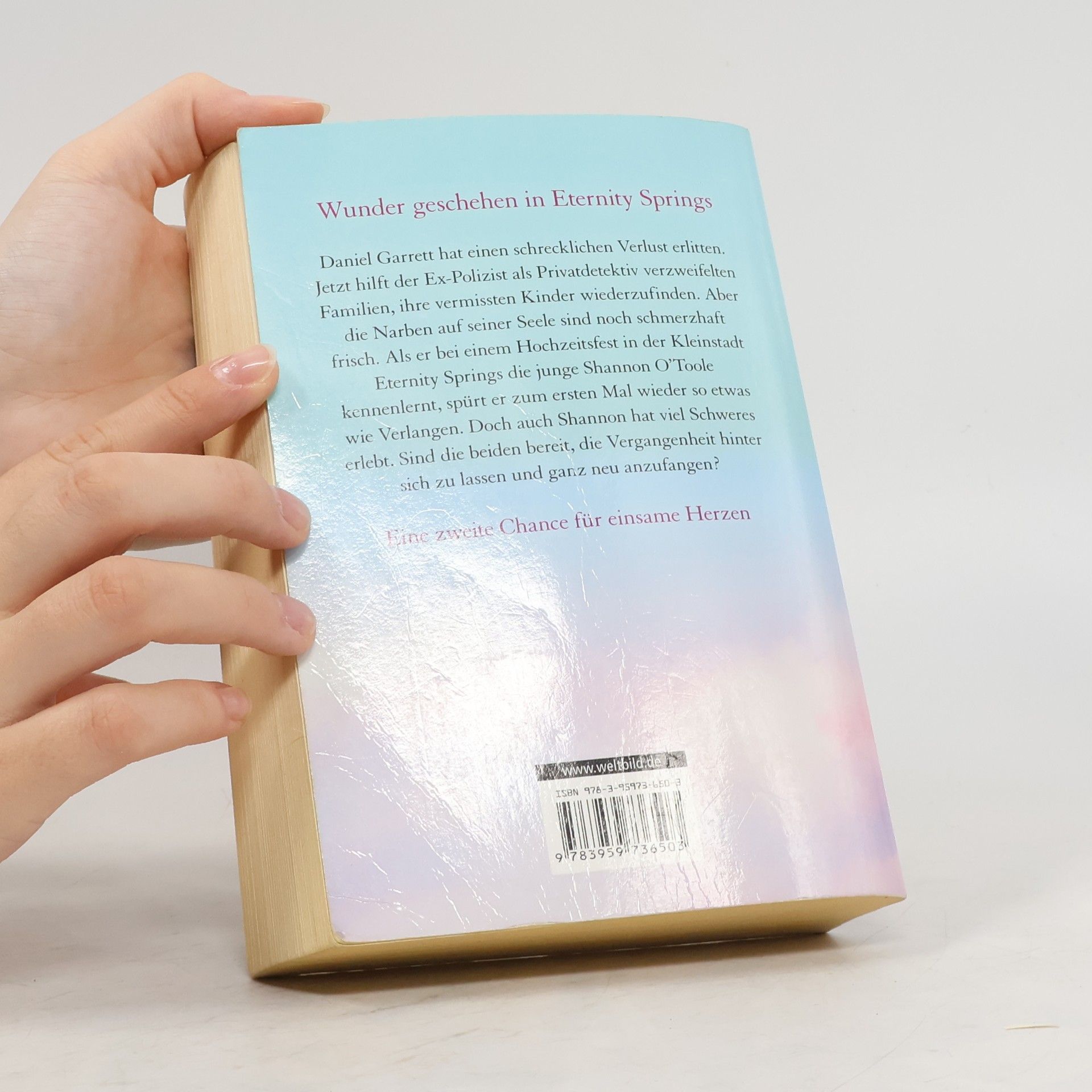 Wunder geschehen in Eternity Springs Daniel Garrett hat einen schrecklichen Verlust erlitten. Jetzt hilft der Ex-Polizist als Privatdetektiv verzweifelten Familien, ihre vermissten Kinder wiederzufinden. Aber die Narben auf seiner Seele sind noch schmerzhaft frisch. Als er bei einem Hochzeitsfest in der Kleinstadt Eternity Springs die junge Shannon O'Toole kennenlernt, spürt er zum ersten Mal wieder so etwas wie Verlangen. Doch auch Shannon hat viel Schweres erlebt. Sind die beiden bereit, die Vergangenheit hinter sich zu lassen und ganz neu anzufangen? Eine zweite Chance für einsame Herzen