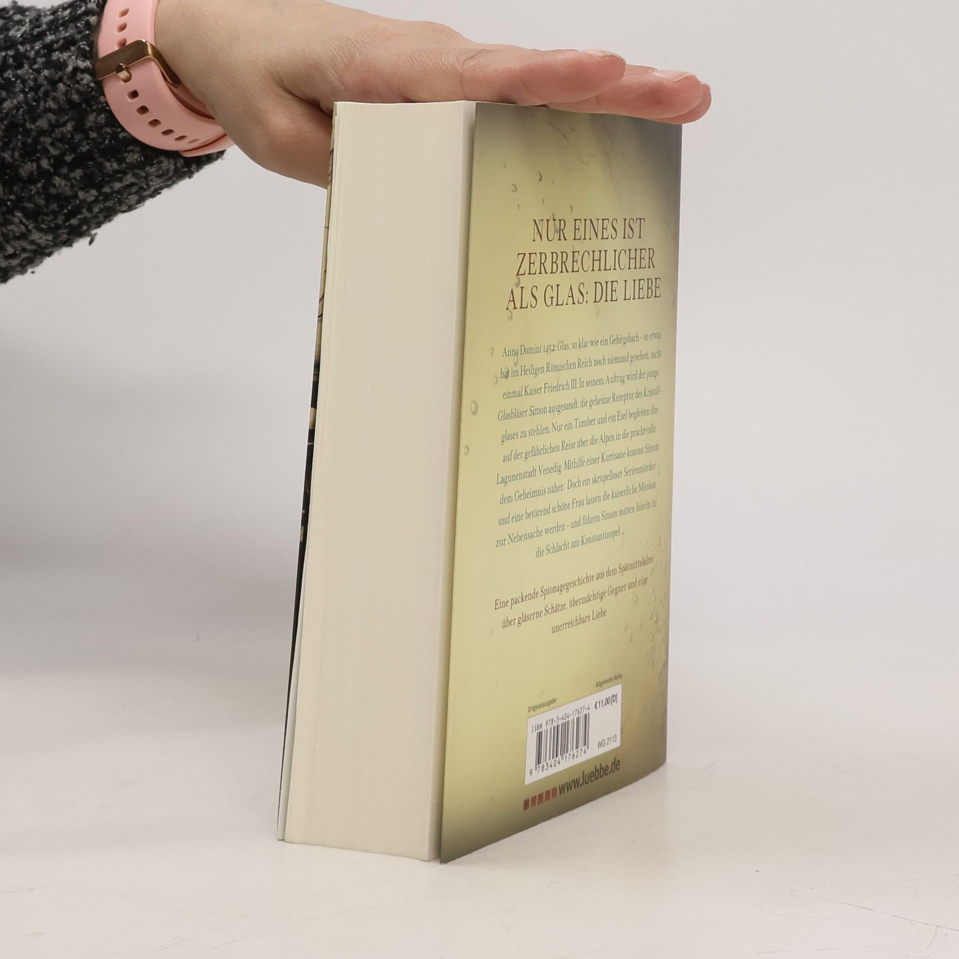 Nur eines ist zerbrechlicher als Glas: die Liebe Anno Domini 1452: Glas, so klar wie ein Gebirgsbach - so etwas hat im Heiligen Römischen Reich noch niemand gesehen, nicht einmal Kaiser Friedrich III. In seinem Auftrag wird der junge Glasbläser Simon ausgesandt, die geheime Rezeptur des Kristallglases zu stehlen. Nur ein Tumber und ein Esel begleiten ihn auf der gefahrvollen Reise über die Alpen in die prachtvolle Lagunenstadt Venedig. Mithilfe einer Kurtisane kommt Simon dem Geheimnis näher. Doch ein skrupelloser Serienmörder und eine betörend schöne Frau lassen die kaiserliche Mission zur Nebensache werden - und führen Simon mitten hinein in die Schlacht um Konstantinopel ... Eine packende Spionagegeschichte aus dem Spätmittelalter über gläserne Schätze, übermächtige Gegner und eine unerreichbare Liebe