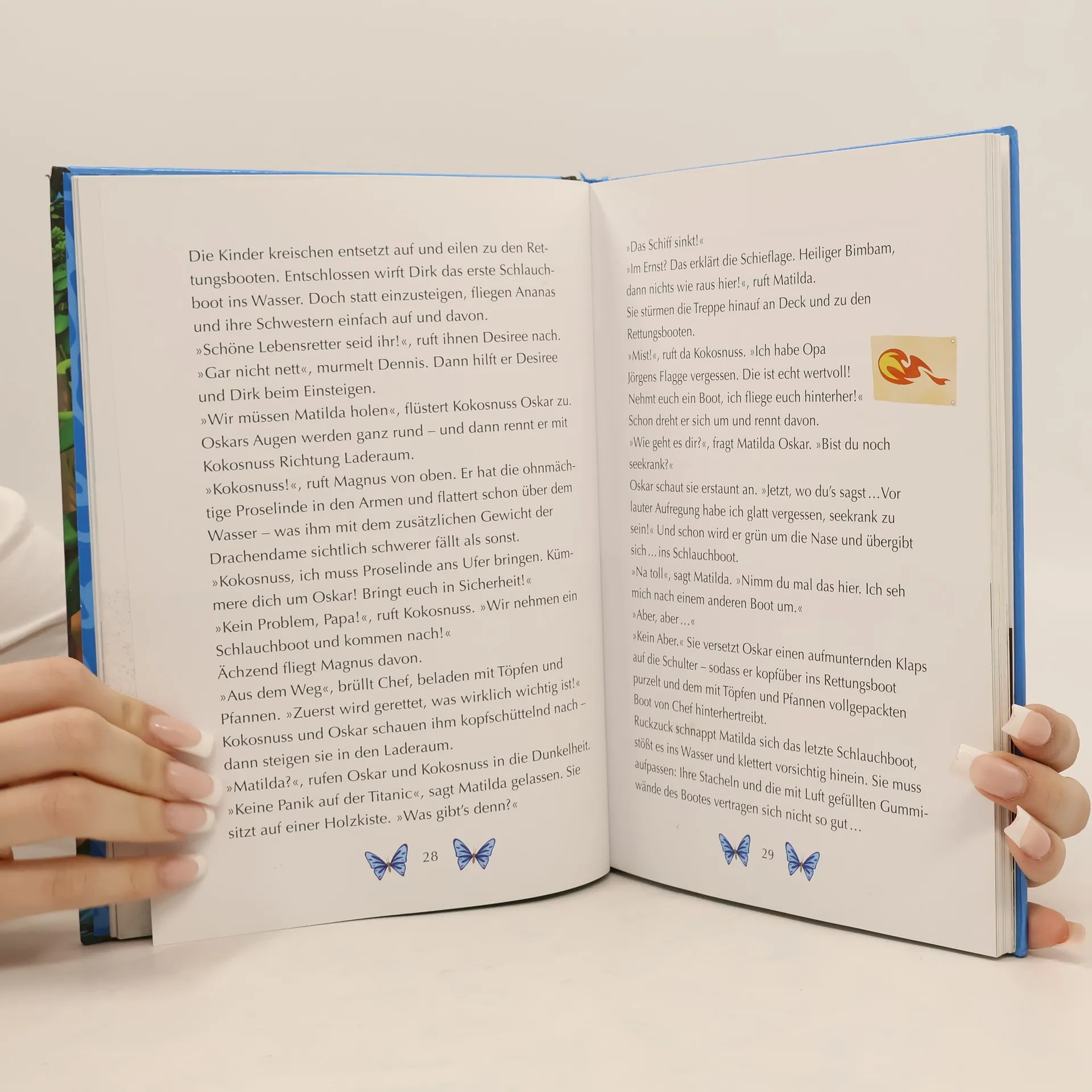 Gemeinsame Erlebnisse verbinden! Auf der Dracheninsel herrscht große Aufregung: Feuerdrachen und Fressdrachen packen für das gemeinsame Feriencamp im Dschungel, denn die erwachsenen Drachen wollen sich in Zukunft besser vertragen. Und das sollen schon die kleinen Drachen lernen! Kokosnuss und Oskar freuen sich riesig auf das Camp. Doch schon die Schiffsreise zu den Dschungelinseln wird zur großen Bewährungsprobe. Nachdem das Boot einen Felsen gerammt hat, muss sich die Reisegruppe zu Fuß durch den Dschungel ins Camp durchschlagen. Dort lauern unbekannte Gefahren und fremdartige Bewohner. Kokosnuss und seinen Freunden ist schnell klar: Sie werden das Camp nur erreichen, wenn alle zusammenhalten! Ausstattung: Mit fbg. Illustrationen