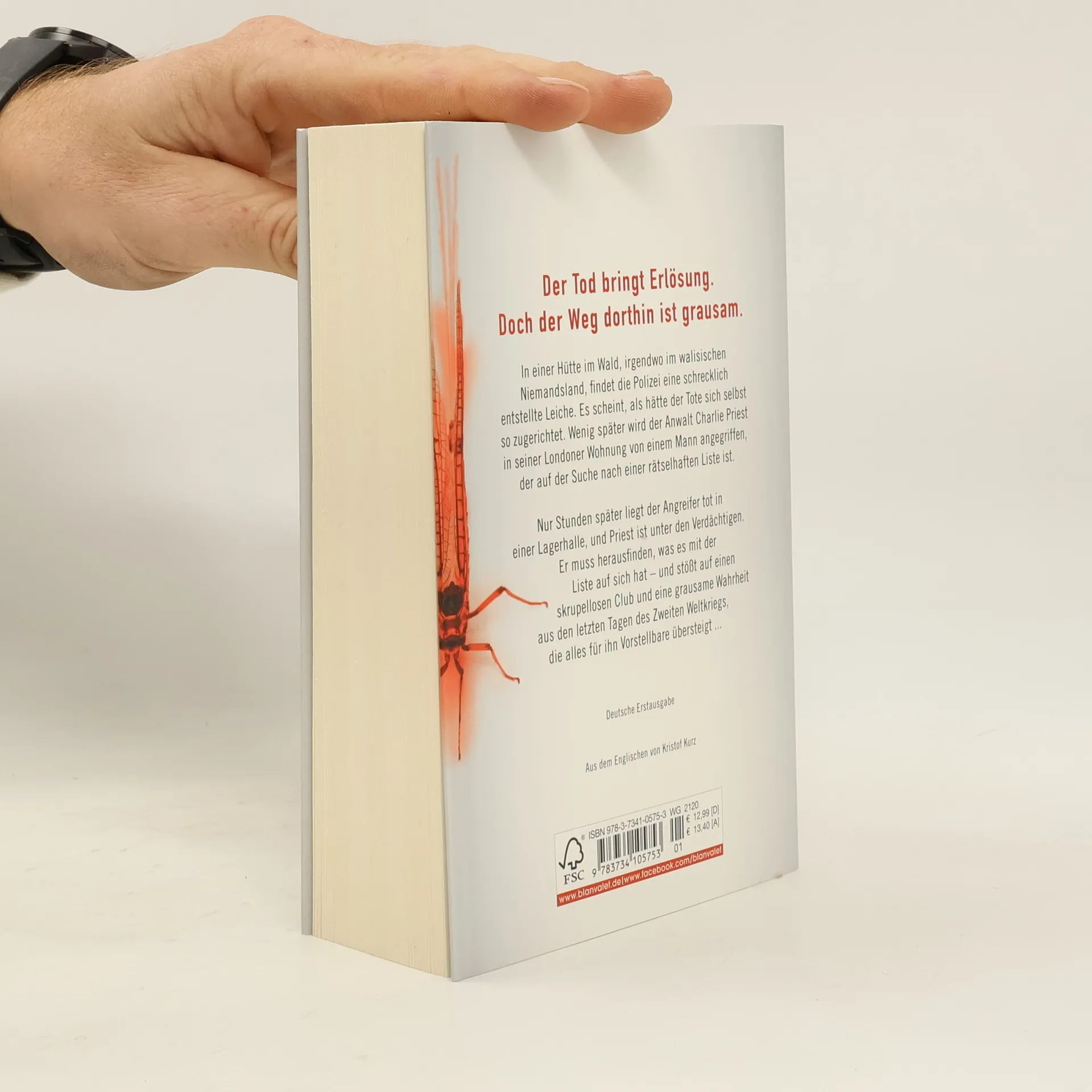 Der Tod bringt Erlösung. Doch der Weg dorthin ist grausam ... In einer Hütte im Wald, irgendwo im walisischen Niemandsland, findet die Polizei eine schrecklich zugerichtete Leiche. Es scheint, als hätte der Tote sich selbst so zugerichtet. Wenig später wird der Anwalt Charlie Priest in seiner Londoner Wohnung von einem Mann angegriffen, der auf der Suche nach einer rätselhaften Liste ist. Nur Stunden später liegt der Angreifer tot in einer Lagerhalle und Priest ist unter den Verdächtigen. Er muss herausfinden, was es mit der Liste auf sich hat – und stößt auf einen skrupellosen Club und eine grausame Wahrheit aus den letzten Tagen des zweiten Weltkriegs, die alles für ihn Vorstellbare übersteigt ...