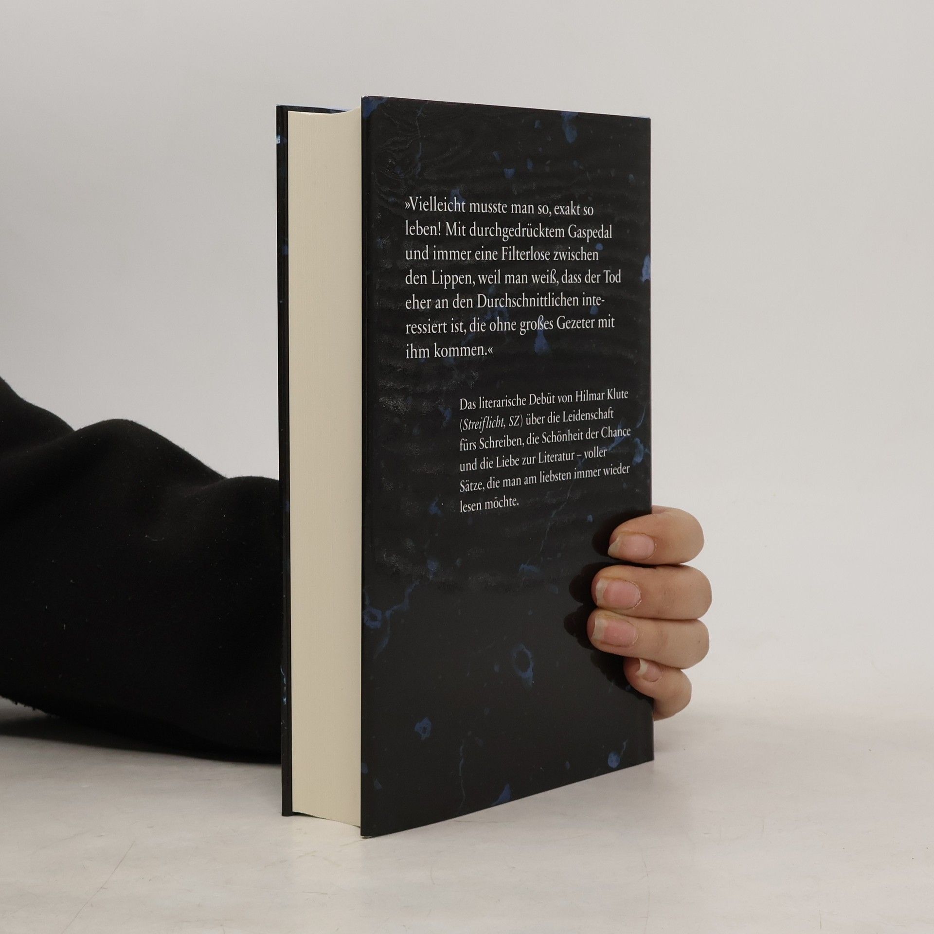 Ein Roman, der im Leben wühlt und die Leidenschaft fürs Schreiben sowie die Liebe zur Literatur thematisiert. Im Ruhrgebiet der achtziger Jahre arbeitet Volker Winterberg als Zivildienstleistender in einem Seniorenheim und träumt davon, ein Dichter wie Peter Rühmkorf zu werden. Während er seine Alten für den Tag vorbereitet, verbringt er die restliche Zeit in Kneipen, trinkend, rauchend und schreibend. Ein Geld- und planloser Kurztrip nach Paris inspiriert ihn zu seinem besten Gedicht, und er gewinnt die Teilnahme an einem Treffen für Nachwuchsschriftsteller in West-Berlin. Dort begegnet er Heiner Müller, dem eigenartigen Dichter Thomas und vor allem Katja, die mit ihm Ausflüge an die Mauer unternimmt und ihm nach seiner Rückkehr Liebesbriefe schreibt. Ein zweiter Besuch in Berlin führt zu einem turbulenten Abenteuer mit Katja und einer verwickelten Odyssee durch das alte West-Berlin. Hilmar Klute entfaltet in atmosphärisch dichter Sprache ein Panorama der deutschen Nachkriegsliteratur, das in dieser Form einzigartig ist. „Vielleicht musste man so, exakt so leben! Mit durchgedrücktem Gaspedal, durchgedrücktem Zigarettenanzünder und immer eine Filterlose zwischen den Lippen, weil man weiß, dass der Tod eher an den Durchschnittlichen interessiert ist, die ohne großes Gezeter mit ihm kommen.“
