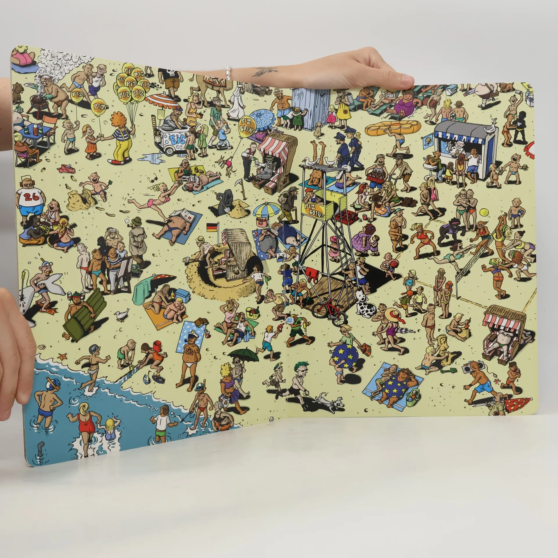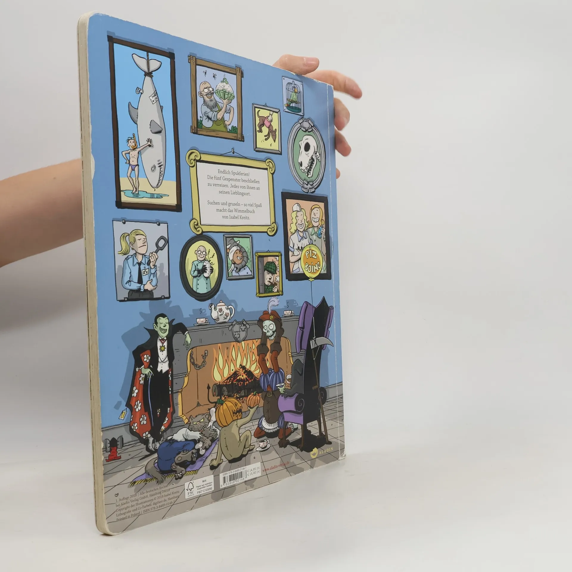 Fünf Schauergestalten beschließen, ihr einsames Schloss zu verlassen und in den Urlaub zu fahren. Nach ihrer Ankunft trennen sich ihre Wege. Den einen zieht es ins Kaufhaus, die andere an den Strand. Die anderen drei Gruselwesen tummeln sich im Museum, im Park oder auf dem Marktplatz. Suchen und gruseln − so viel Spaß kann ein Wimmelbuch machen. Das erste Wimmelbuch der Illustratorin und Comic-Künstlerin Isabel Kreitz ist ein Riesenspaß für Leser jeden Alters.