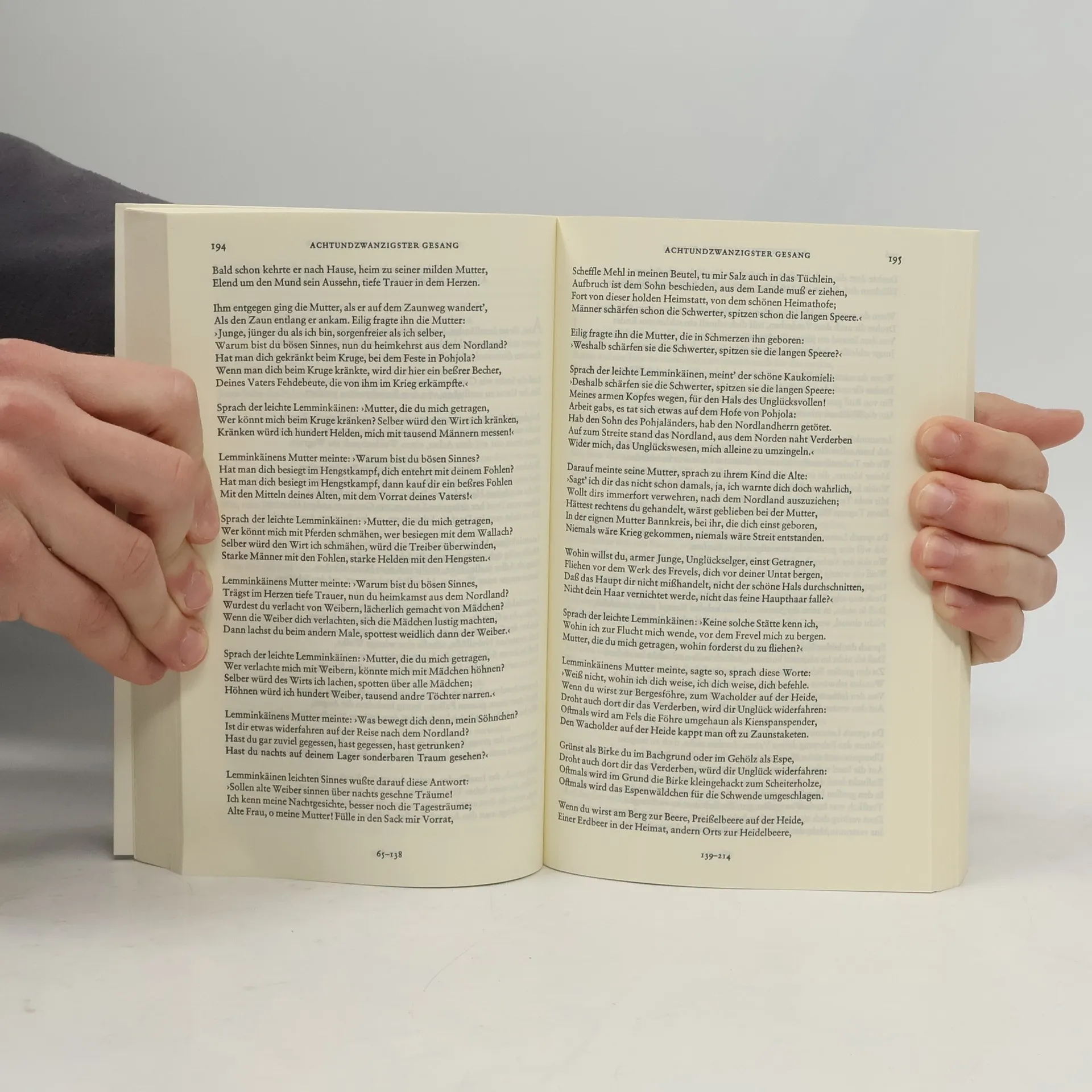 Das Kalevala (1849 in seiner endgültigen Gestalt erschienen) ist eine Schöpfung des Elias Lönnrot, der in jahrelanger Sammeltätigkeit alte Lieder, Liedfragmente und Sprüche zusammentrug und die heterogenen Elemente schliesslich zu einem einheitlichen Werk, einem grossen Fresko der mythischen Frühzeit Finnlands, zusammenfügte. In ihm ist ein Nationalepos entstanden, das in seiner kulturgeschichtlichen Bedeutung wie in seiner ästhetischen Qualität auf einer Ebene mit den anderen grossen Epen Europas steht: mit dem Nibelungenlied und dem Rolandslied, dem Cid und der Edda