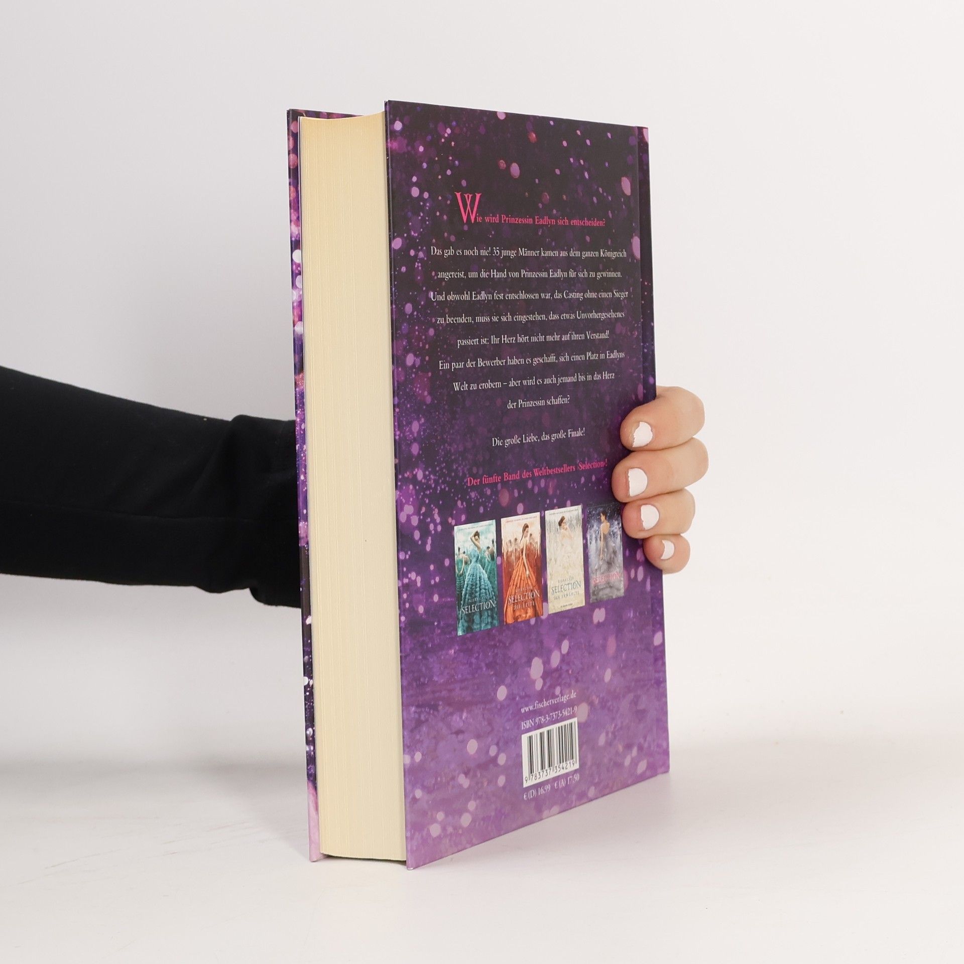 Die große Liebe, das große Finale - darauf haben alle ›Selection‹-Fans gewartet! Als das Casting begann, war Eadlyn wild entschlossen, sich nicht zu verlieben und keinen der Bewerber an sich heranzulassen. Doch nun muss sie sich eingestehen, dass einige von ihnen doch Eindruck bei ihr hinterlassen haben: Henri, der charmante Lockenkopf, und sein bester Freund Erik. Der aufmerksame und rücksichtsvolle Hale. Der selbstsichere und attraktive Ean. Und natürlich Kile, Eadlyns Lieblingsfeind aus Sandkastenzeiten, der sie zu ihrem Ärger immer wieder aus der Reserve lockt. Sie alle haben es geschafft, einen Platz in Eadlyns Welt zu erobern. Aber wird es auch jemand in das Herz der Prinzessin schaffen? Der 5. Band des internationalen Weltbestsellers - wunderbar romantisch und ein krönender Abschluss!