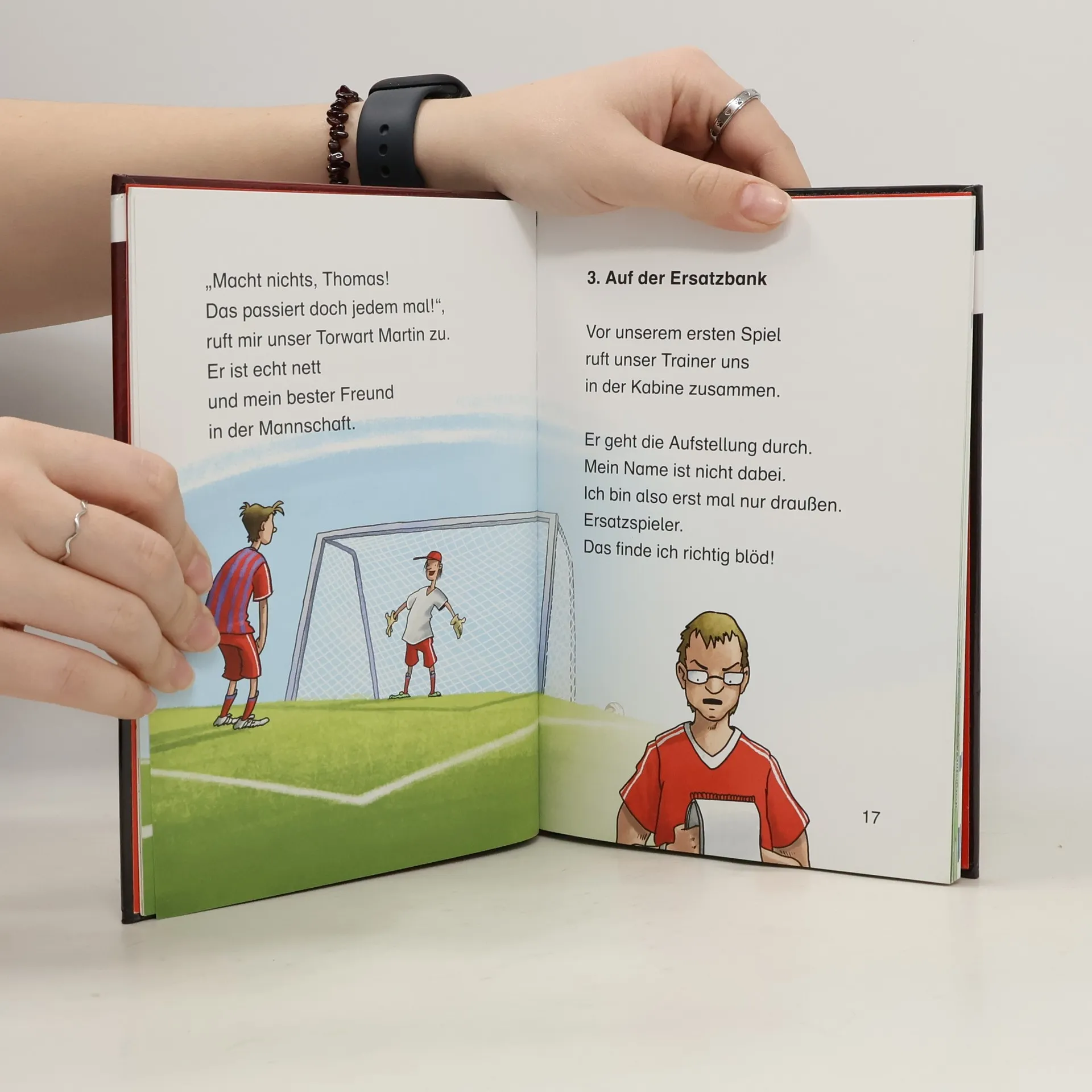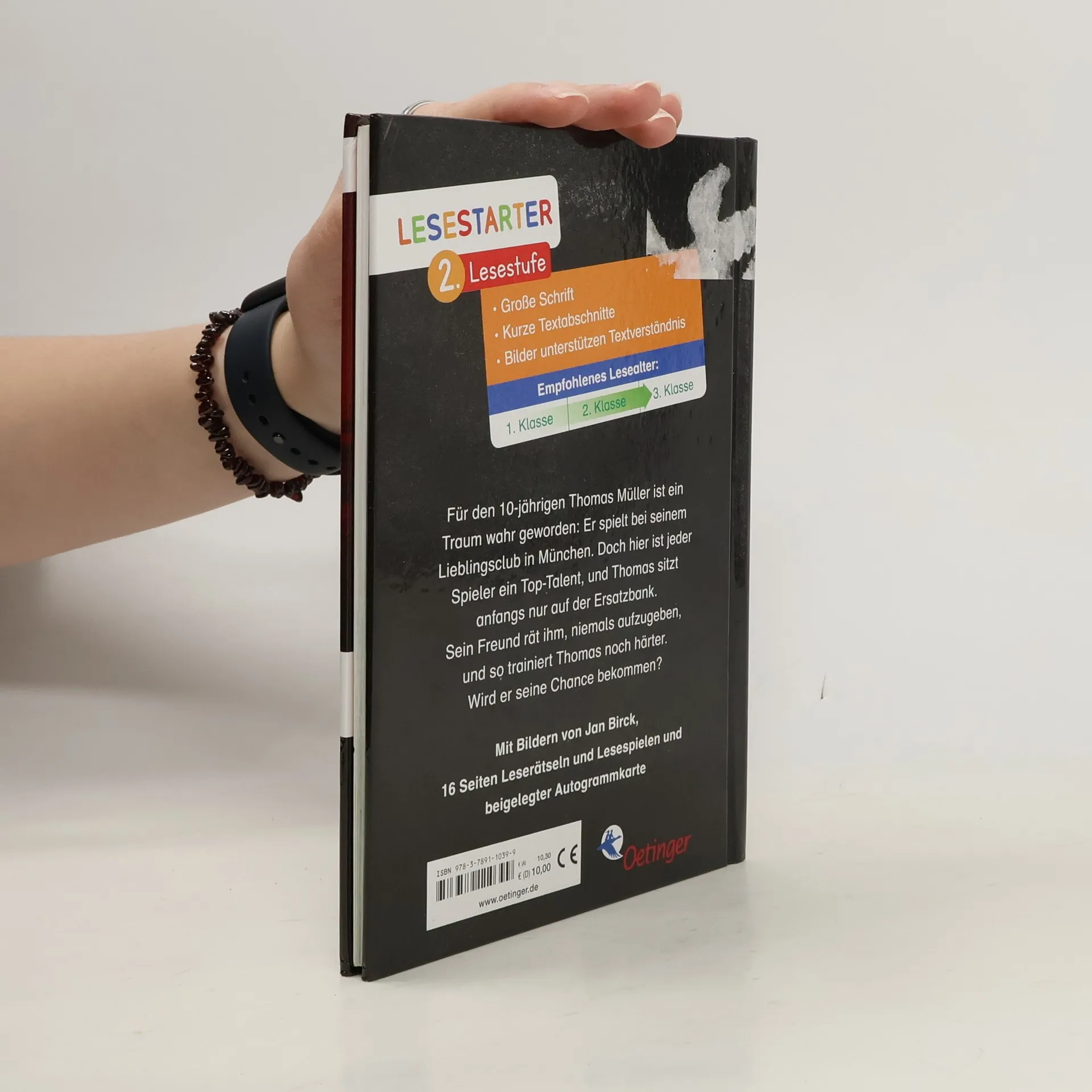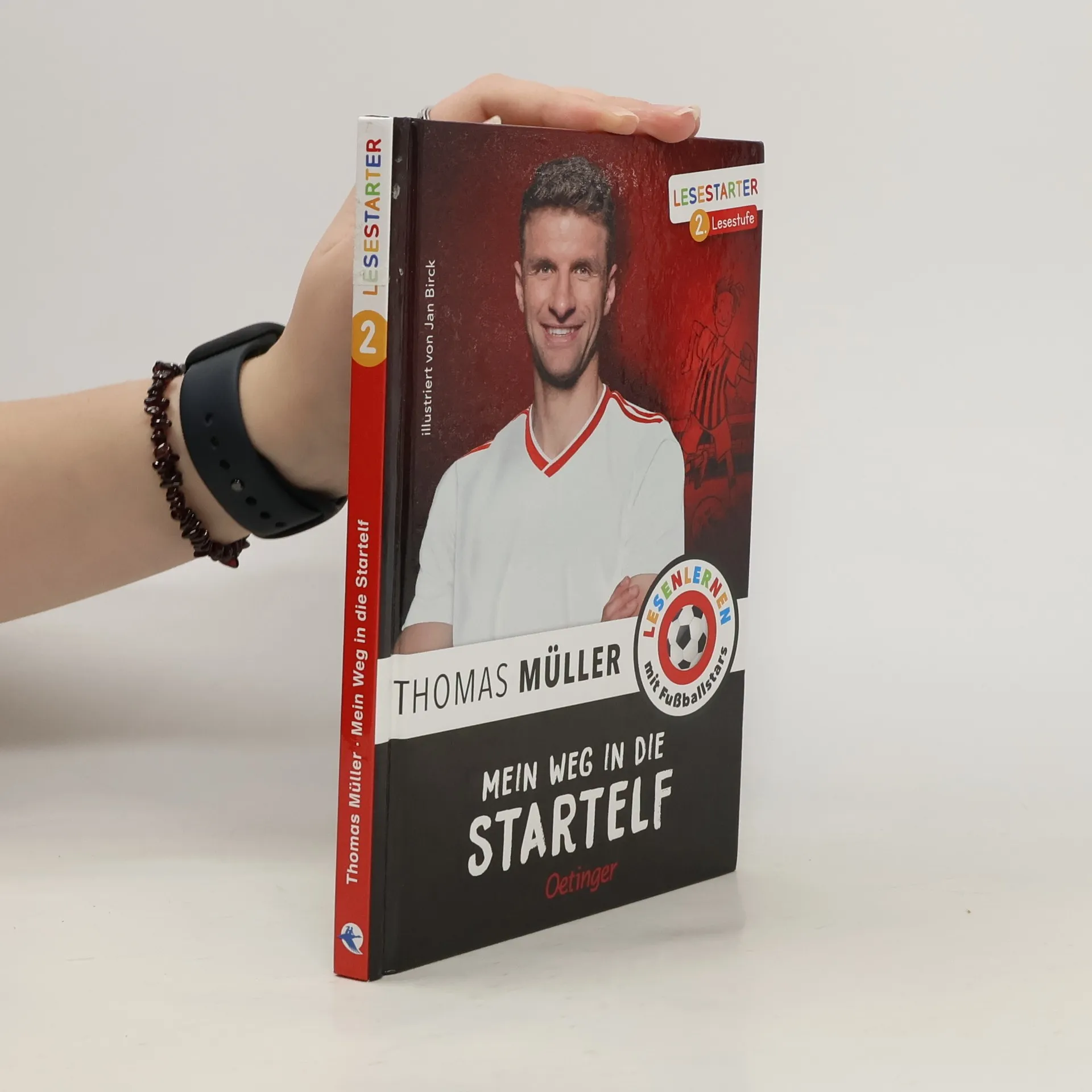 „Mein Weg in die Startelf“ von Thomas Müller schildert die motivierende Geschichte des jungen Thomas Müller, der seinen Platz in der ersten Mannschaft des renommierten FC Bayern München erkämpft. Mit nur zehn Jahren beginnt seine Reise, die von der Ersatzbank startet und durch unermüdliches Training und die Ermutigung seines Teamkollegen Martin zu seiner ersten großen Chance führt. Dieses Buch ist perfekt für Leseanfänger zwischen 7 und 9 Jahren, die durch Thomas Müllers echte Erfahrungen sowohl die Freuden als auch die Herausforderungen des Fußballs kennenlernen. Die Geschichte ist angereichert mit vielen Illustrationen im Comicstil, großen Schriftarten und kurzen Textabschnitten, die das Lesen erleichtern. Zusätzlich enthält es 16 Seiten mit Leserätseln und Spielen, die das Verständnis vertiefen und die Handlung lebendig machen. Gelistet bei Antolin. Förderung der Lesebegeisterung : Speziell für junge Fußballfans konzipiert, die durch die spannende Geschichte von Thomas Müller zum Lesen motiviert werden. Bildungsreich und unterhaltsam : Enthält Spiele und Rätsel, die das Gelesene vertiefen und gleichzeitig Spaß machen. Visuell unterstütztes Lernen : Große Schrift und zahlreiche Illustrationen helfen jungen Leser*innen, den Text leichter zu verstehen und fördern das Interesse am Lesen. Reale Vorbildfunktion : Thomas Müllers Geschichte inspiriert Kinder, durch Anstrengung und Ausdauer ihre Träume zu verfolgen. Ideal für Sportbegeisterte : Verbindet die Leidenschaft für Fußball mit dem Lesenlernen und macht beide Aspekte ansprechend für junge Leser.
