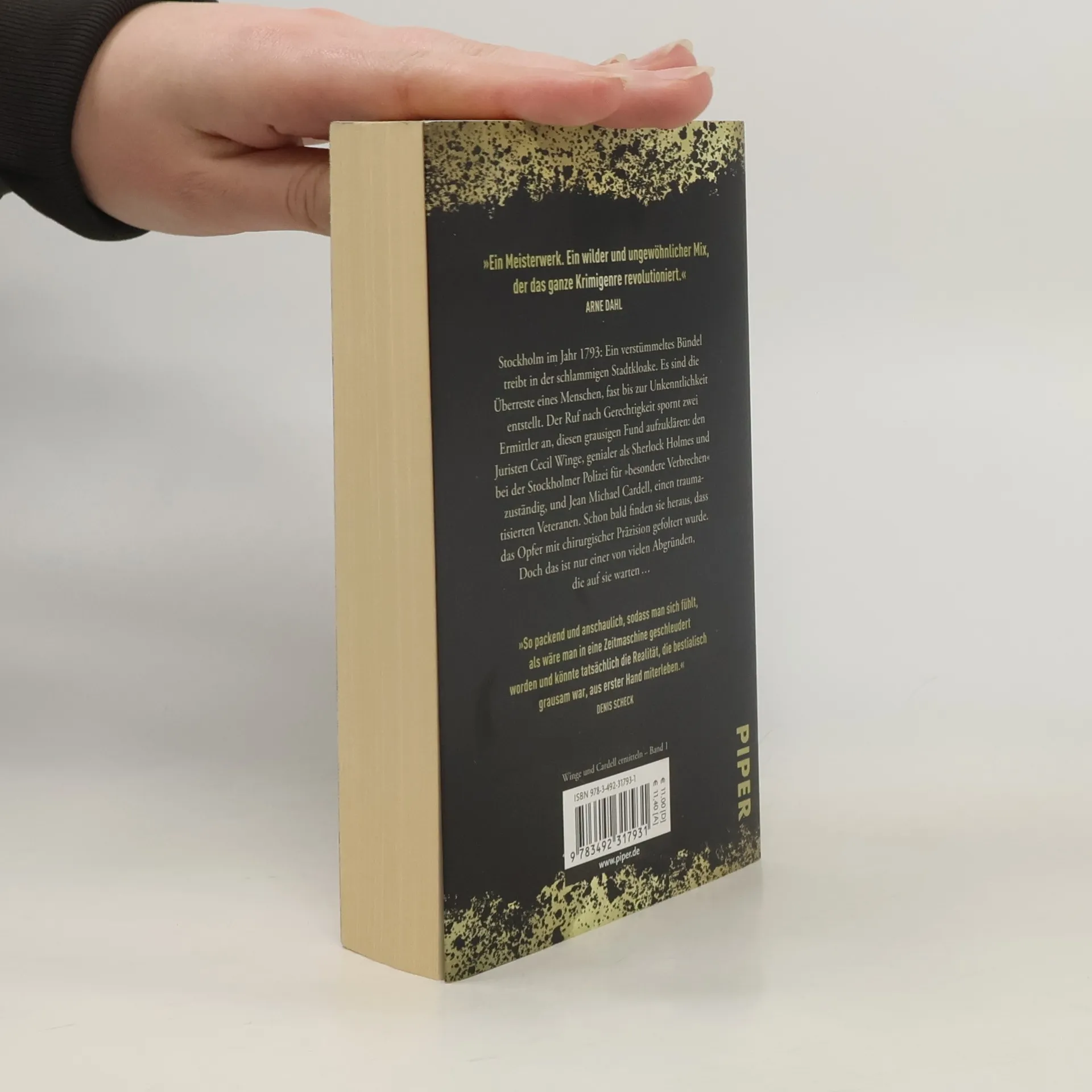 »Ein Meisterwerk. Ein wilder und ungewöhnlicher Mix, der das ganze Krimigenre revolutioniert.« Arne Dahl Stockholm im Jahr 1793: Ein verstümmeltes Bündel treibt in der schlammigen Stadtkloake. Es sind die Überreste eines Menschen, fast bis zur Unkenntlichkeit entstellt. Der Ruf nach Gerechtigkeit spornt zwei Ermittler an, diesen grausamen Fund aufzuklären: den Juristen Cecil Winge, genialer als Sherlock Holmes und bei der Stockholmer Polizei für »besondere Verbrechen« zuständig, und Jean Michael Cardell, einen traumatisierten Veteranen mit einem Holzarm. Schon bald finden sie heraus, dass das Opfer mit chirurgischer Präzision gefoltert wurde, doch das ist nur einer von vielen Abgründen, die auf sie warten … Der Nummer-1-Bestseller aus Schweden »Stellen Sie sich ›The Alienist – Die Einkreisung‹ im Stockholm des 18. Jahrhunderts vor: wuchtig, blutig, vielschichtig, herzzerreißend spannend. ›1793‹ ist der beste historische Krimi, den ich in zwanzig Jahren gelesen habe!« A. J. Finn