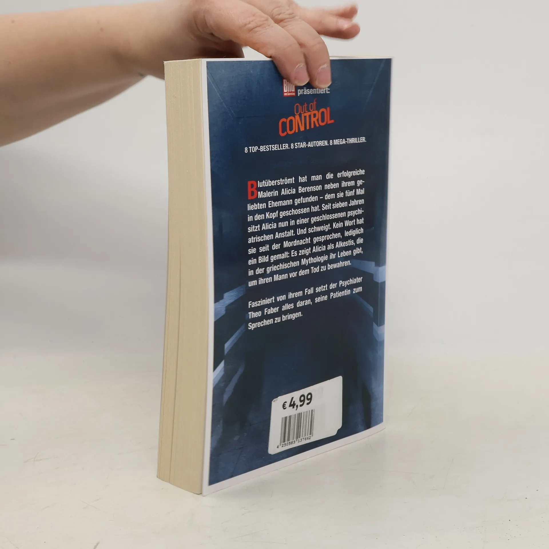 Blutüberströmt hat man die erfolgreiche Malerin Alicia Berenson neben ihrem geliebten Ehemann gefunden – dem sie fünf Mal in den Kopf geschossen hat. Seit sieben Jahren sitzt Alicia nun in einer geschlossenen psychiatrischen Anstalt. Und schweigt. Kein Wort hat sie seit der Mordnacht gesprochen, lediglich ein Bild gemalt: Es zeigt Alicia als Alkestis, die in der griechischen Mythologie ihr Leben gibt, um ihren Mann vor dem Tod zu bewahren. Fasziniert von ihrem Fall, setzt der Psychiater Theo Faber alles daran, seine Patientin zum Sprechen zu bringen.