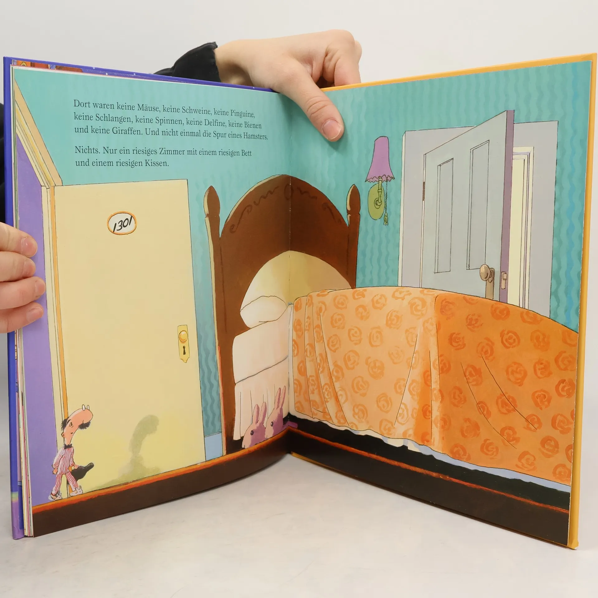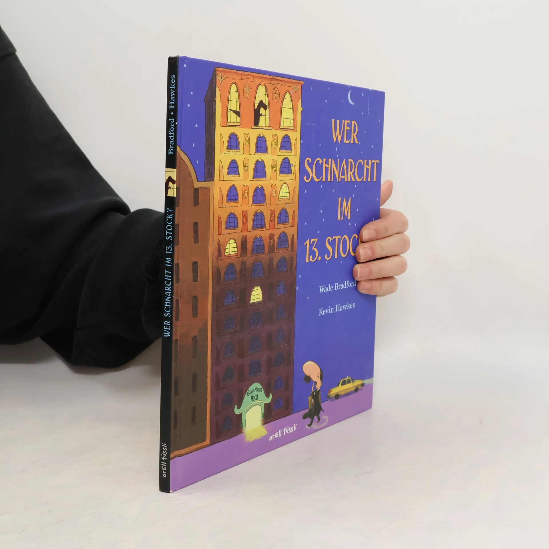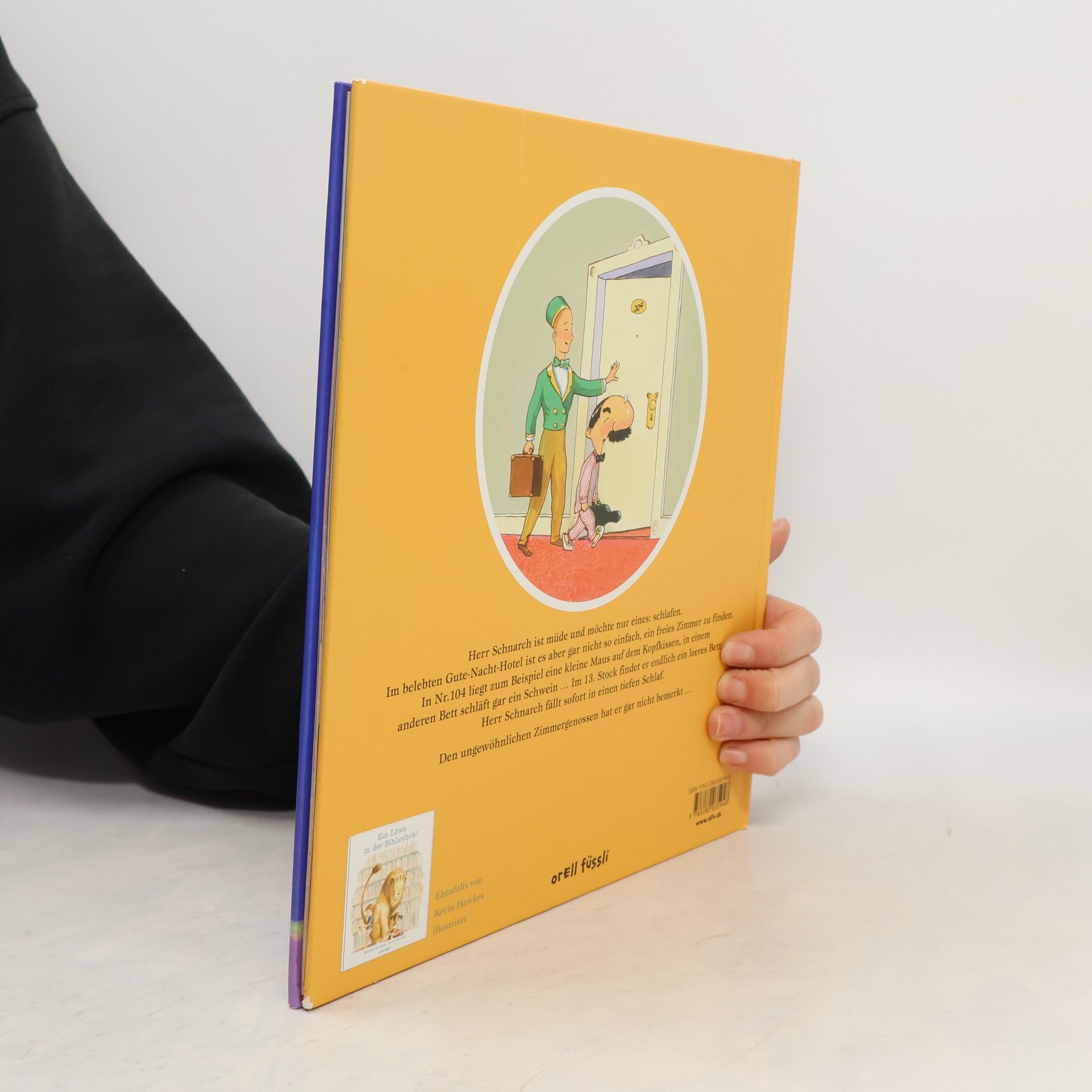 Endlich ein Bett! Herr Schnarch ist müde und möchte schlafen. Im Gute-Nacht-Hotel ist es allerdings nicht einfach, ein Bett zu finden! Mal liegt eine Maus auf dem Kopfkissen, dann ein Schwein im Bett oder es tropft es von der Zimmerdecke. In jedem Zimmer, das ihm der stoisch-liebenswürdige Rezeptionist zeigt, gibt es etwas Überraschendes, das den Hotelgast wach hält. Im 13. Stock sind die Möbel zwar etwas groß, aber es ist ruhig und das Bett ist leer! Endlich, Herr Schnarch schläft sofort ein. Den ungewöhnlichen Zimmergenossen hat er gar nicht bemerkt ...