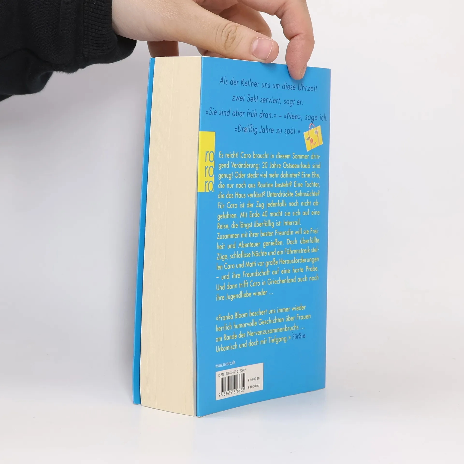 Interrail mit Ende 40? Bestsellerautorin Franka Bloom schickt ihre Protagonistin mit Ende 40 auf Interrail-Tour. Das perfekte Sommerbuch über alte Träume, neue Wege und das große Glück. Es reicht! Caro braucht in diesem Sommer dringend Veränderung: 20 Jahre Ostseeurlaub sind genug! Oder steckt viel mehr dahinter? Eine Ehe, die nur noch aus Routine besteht? Eine Tochter, die das Haus verlässt? Unterdrückte Sehnsüchte? Für Caro ist der Zug jedenfalls noch nicht abgefahren. Mit Ende 40 macht sie sich auf eine Reise, die längst überfällig ist: Interrail. Zusammen mit ihrer besten Freundin will sie Freiheit und Abenteuer genießen. Doch überfüllte Züge, schlaflose Nächte und ein Fähren-Streik stellen Caro und Matti vor große Herausforderungen – und ihre Freundschaft auf eine harte Probe. Und dann trifft Caro in Griechenland auch noch ihre Jugendliebe wieder …