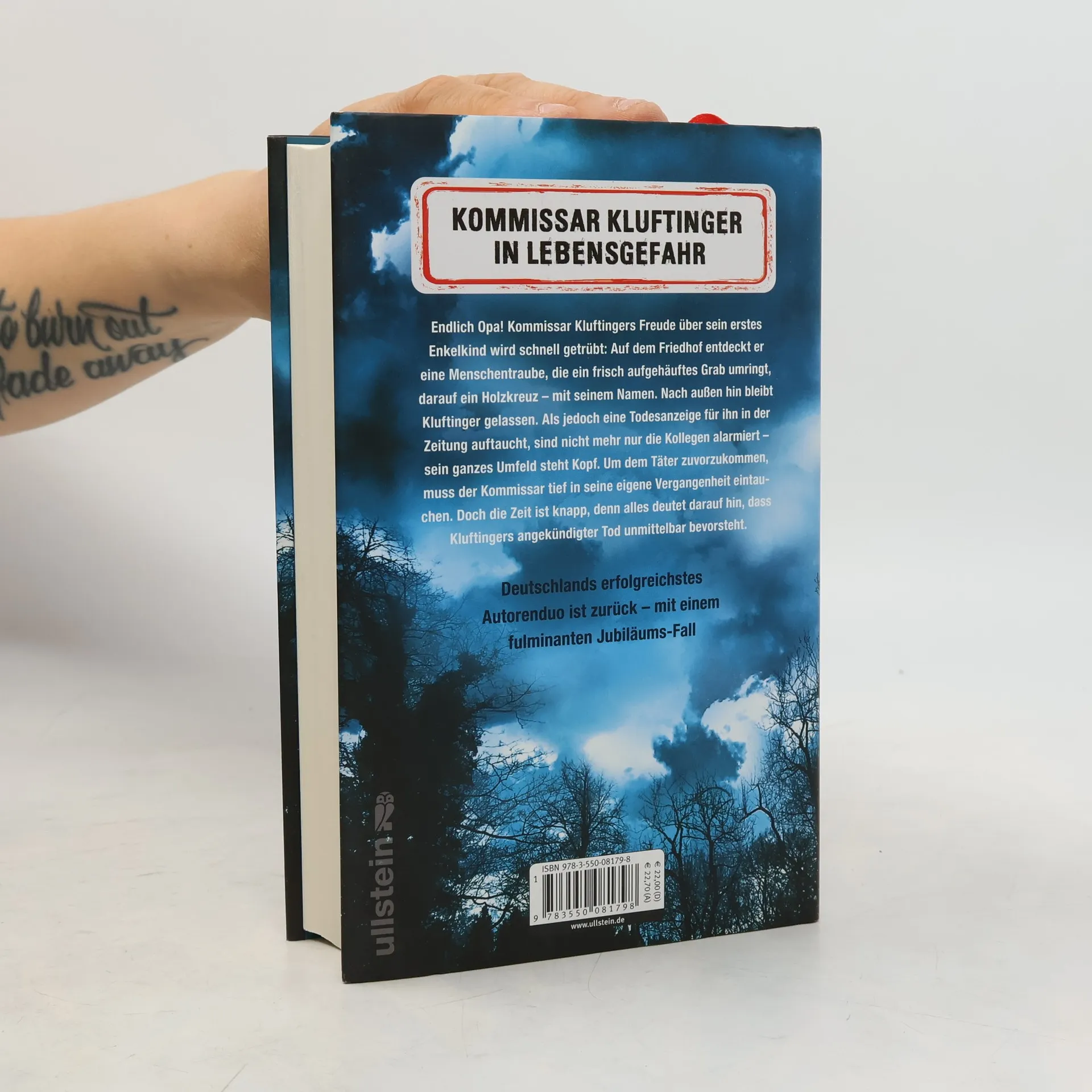 Kommissar Kluftinger in Lebensgefahr Endlich Opa! Kommissar Kluftingers Freude über sein erstes Enkelkind wird schnell getrübt: Auf dem Friedhof entdeckt er eine Menschentraube, die ein frisch aufgehäuftes Grab umringt, darauf ein Holzkreuz – mit seinem Namen. Nach außen hin bleibt Kluftinger gelassen. Als jedoch eine Todesanzeige für ihn in der Zeitung auftaucht, sind nicht mehr nur die Kollegen alarmiert – sein ganzes Umfeld steht Kopf. Um dem Täter zuvorzukommen, muss der Kommissar tief in seine eigene Vergangenheit eintauchen. Doch die Zeit ist knapp, denn alles deutet darauf hin, dass Kluftingers angekündigter Tod unmittelbar bevorsteht. Deutschlands erfolgreichstes Autorenduo ist zurück - mit dem großen Jubiläums-Bestseller, in dem endlich das Geheimnis um Kluftingers Vornamen gelüftet wird!
