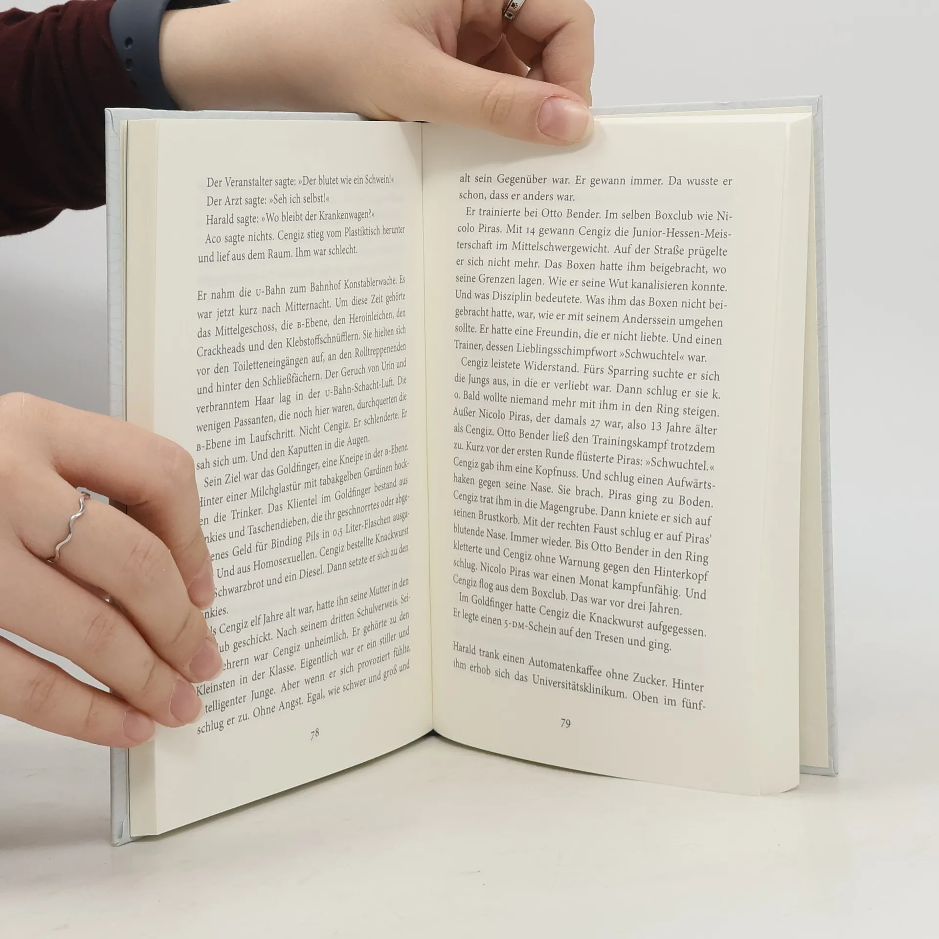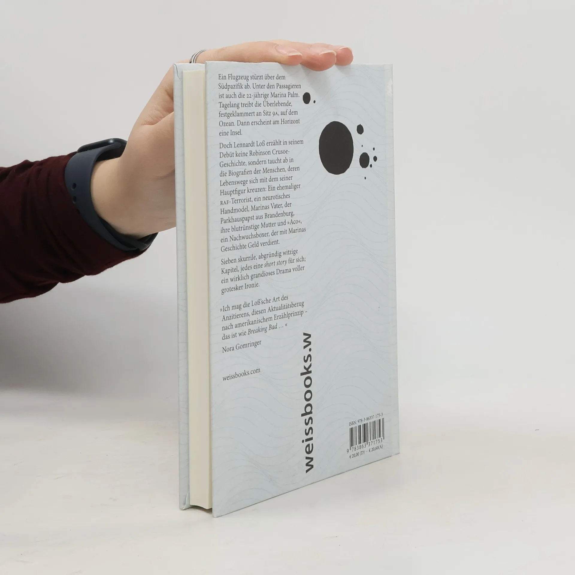Ein Passagierflugzeug stürzt über dem Südpazifik ab. Unter den Passagieren, die nicht sofort ertrinken, ist die 22-jährige Marina Palm. Tagelang treibt sie, festgeklammert an einen Fenstersitz, auf dem Ozean. Dann erscheint am Horizont eine einsame Insel… Loß erzählt in seinem Debüt keine Robinson Crusoe Geschichte, sondern von Menschen, deren Lebenswege sich mit dem seiner Hauptfigur kreuzen. Da ist Marinas Vater, ein Bauunternehmer zwischen Größenwahn und Lächerlichkeit, ihre geltungssüchtige Mutter, die den Verlust der Tochter durch das Drehen eines Splatterfilms verarbeitet, oder ihr Freund, ein Nachwuchsboxer, der mit Marinas Geschichte viel Geld verdient. Sieben skurrile, abgründige Kapitel, jedes eine Short Story für sich; ein wirklich grandioses Drama voller grotesker Ironie.