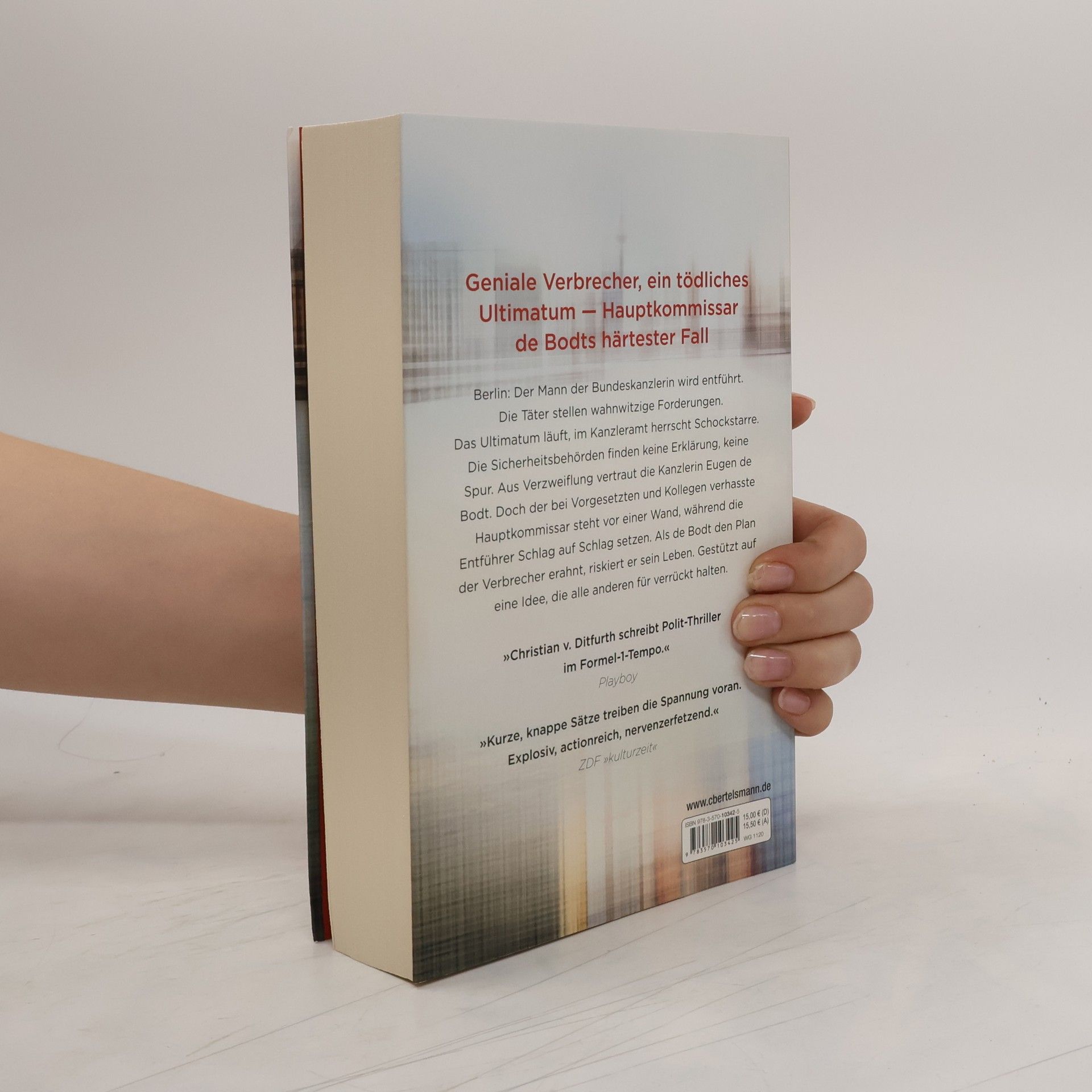 Alarm im Kanzleramt! Berlin im Herbst 2019: Der Ehemann der Kanzlerin wird gekidnappt. Die Entführer stellen unerfüllbare Forderungen. Eine deutsche Regierung lässt sich nicht erpressen. Oder doch? Die Entführer meinen es ernst, senden eine abgetrennte Hand ins Polizeirevier. Der Machtapparat ist in Schockstarre, de Bodt schafft es allerdings, Dr. Süß zu befreien. Aber das Katz-und-Maus-Spiel hat gerade erst angefangen. In Frankreich wird die Gattin des Präsidenten entführt … Kommissar Eugen de Bodt und sein Team stehen vor einer fast unlösbaren Aufgabe.
