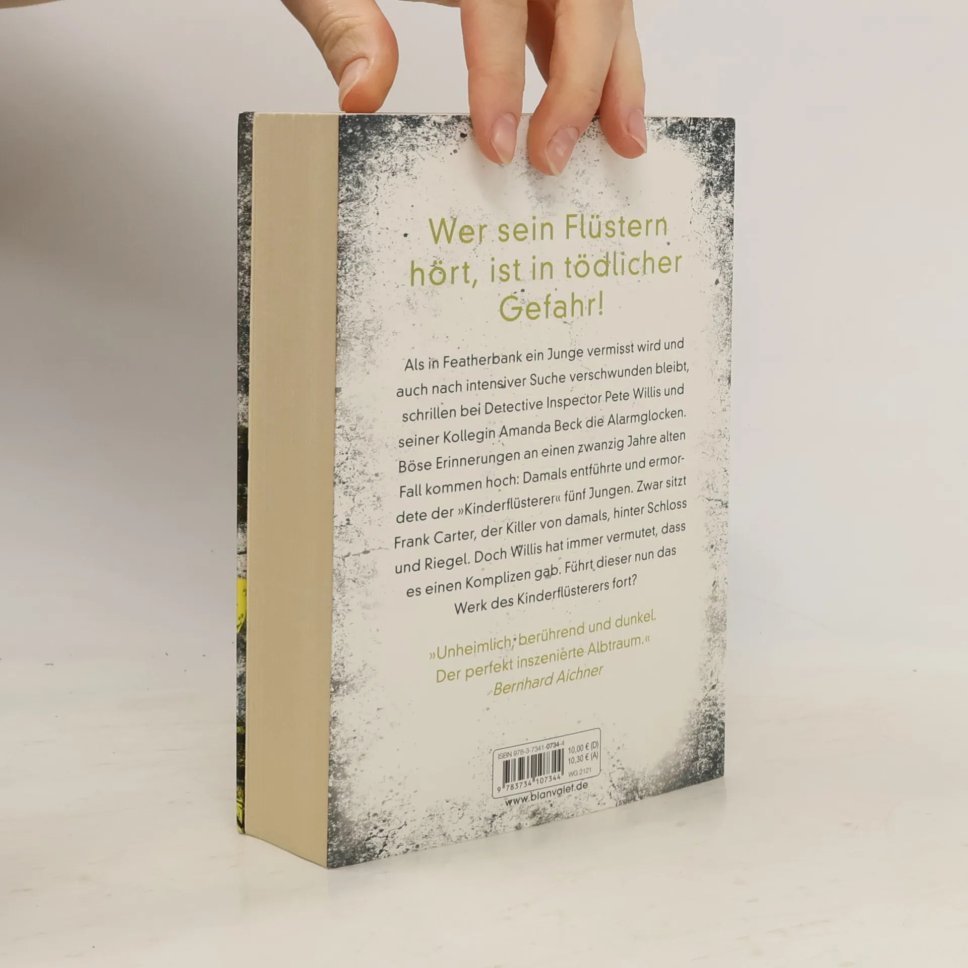 Wer sein Flüstern hört, ist in tödlicher Gefahr! Als in Featherbank ein Junge vermisst wird und auch nach intensiver Suche verschwunden bleibt, schrillen bei Detective Inspector Pete Willis und seiner Kollegin Amanda Beck die Alarmglocken. Böse Erinnerungen an einen zwanzig Jahre alten Fall kommen hoch: Damals entführte und ermordete der »Kinderflüsterer« fünf Jungen. Zwar sitzt Frank Carter, der Killer von damals, hinter Schloss und Riegel. Doch Willis hat immer vermutet, dass es einen Komplizen gab. Führt dieser nun das Werk des Kinderflüsterers fort? Zur selben Zeit zieht Tom Kennedy mit seinem Sohn Jake nach Featherbank, um nach dem Tod seiner Frau dort neu anzufangen. Tom macht sich Sorgen um Jake: Der Junge spricht mit imaginären Freunden. Und er hört nachts ein Flüstern draußen an seinem Fenster … Düster, bedrohlich, unheimlich – der Bestseller von Alex North!