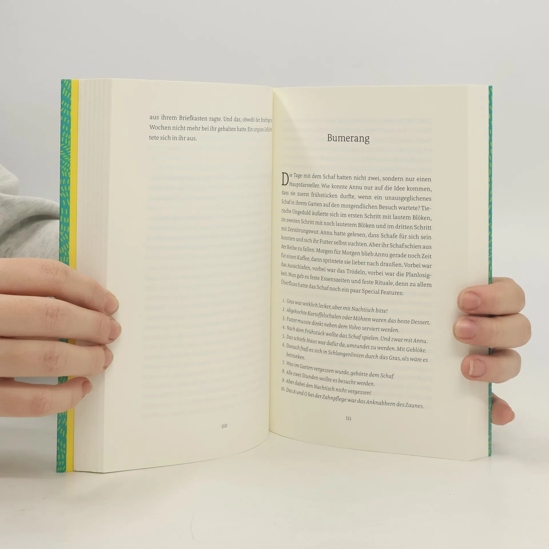 Ein kleines Dorf, ein tragischer Unfall und ein Schaf namens Bumerang - eine hinreißende Geschichte über Zuversicht und das Leben Nichts ist mehr wie vorher in dem kleinen Dorf. Seitdem Annu einen tragischen Unfall verursacht hat, schneiden sie die Nachbarn. Sogar ihr bester Freund Lars hat sich von ihr abgewandt. Langsam, aber sicher verzweifelt Annu allein in ihrem windschiefen Haus. Bis eines Tages ein Schaf vor ihrer Tür steht, das sich nicht wegschicken lässt. Der störrische Gast heißt von nun an Bumerang – und holt Annu langsam ins Leben zurück. Die Zuversicht kommt im Schafspelz: ein hinreißender Roman, der einen direkt in den verwilderten Garten von Annu versetzt, mitten auf das alte Sofa, auf dem es sich auch schon Bumerang bequem gemacht hat.