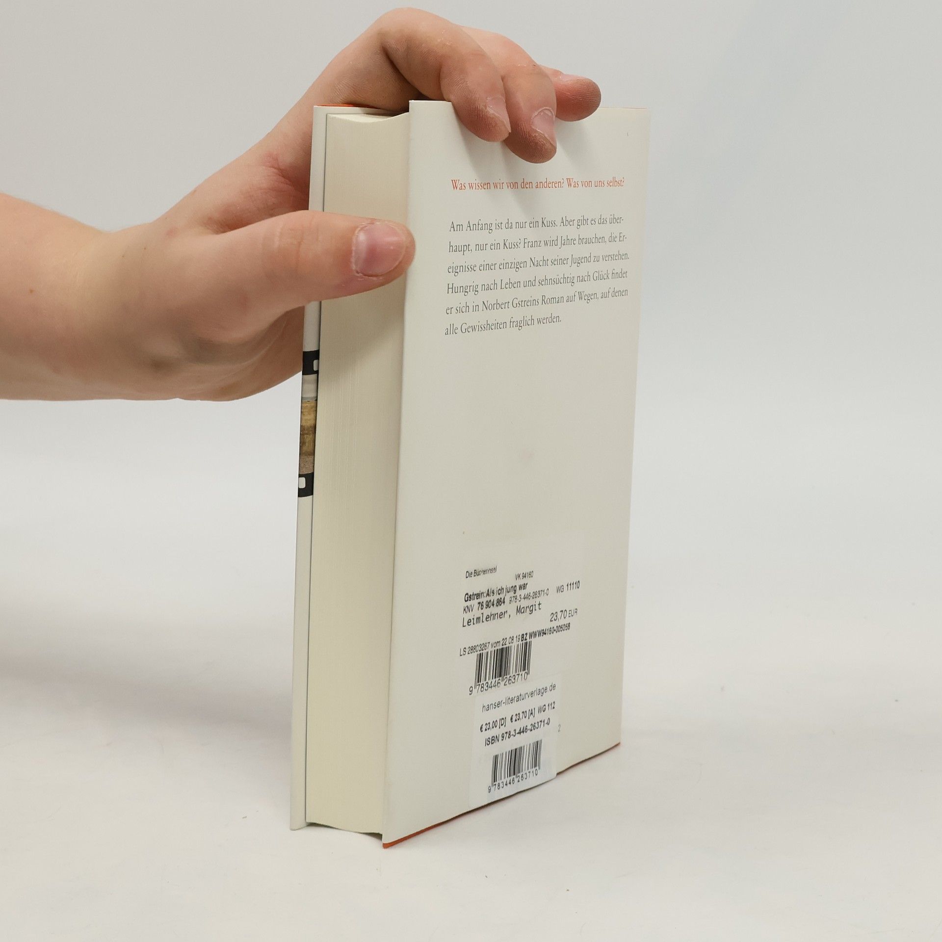 „Norbert Gstrein ist ein Meister des 'zwielichtigen' Erzählens. Er setzt Zeichen um Zeichen. Man folgt seinem Konstrukt und seinem bewundernswert klaren Satzbau mit Spannung.„ Aus der Jurybegründung zur Verleihung des Österreichischen Buchpreises 2019 Am Anfang ist da nur ein Kuss. Aber gibt es das überhaupt, nur ein Kuss? Franz wächst im hintersten Tirol auf. Er fotografiert Paare “am schönsten Tag ihres Lebens", bis bei einer Hochzeitsfeier die Braut ums Leben kommt. Was hat das mit ihm zu tun? Was damit, dass er nur Wochen zuvor am selben Ort ein Mädchen geküsst hat? Vor diesen Fragen flieht er bis nach Amerika. Doch dann stirbt auch dort jemand: ein Freund, in dessen Leben sich ebenfalls mögliche Gewalt und mögliche Unschuld die Waage halten. Was wissen wir von den anderen? Was von uns selbst? Hungrig nach Leben und sehnsüchtig nach Glück findet sich Franz in Norbert Gstreins Roman auf Wegen, bei denen alle Gewissheiten fraglich werden.