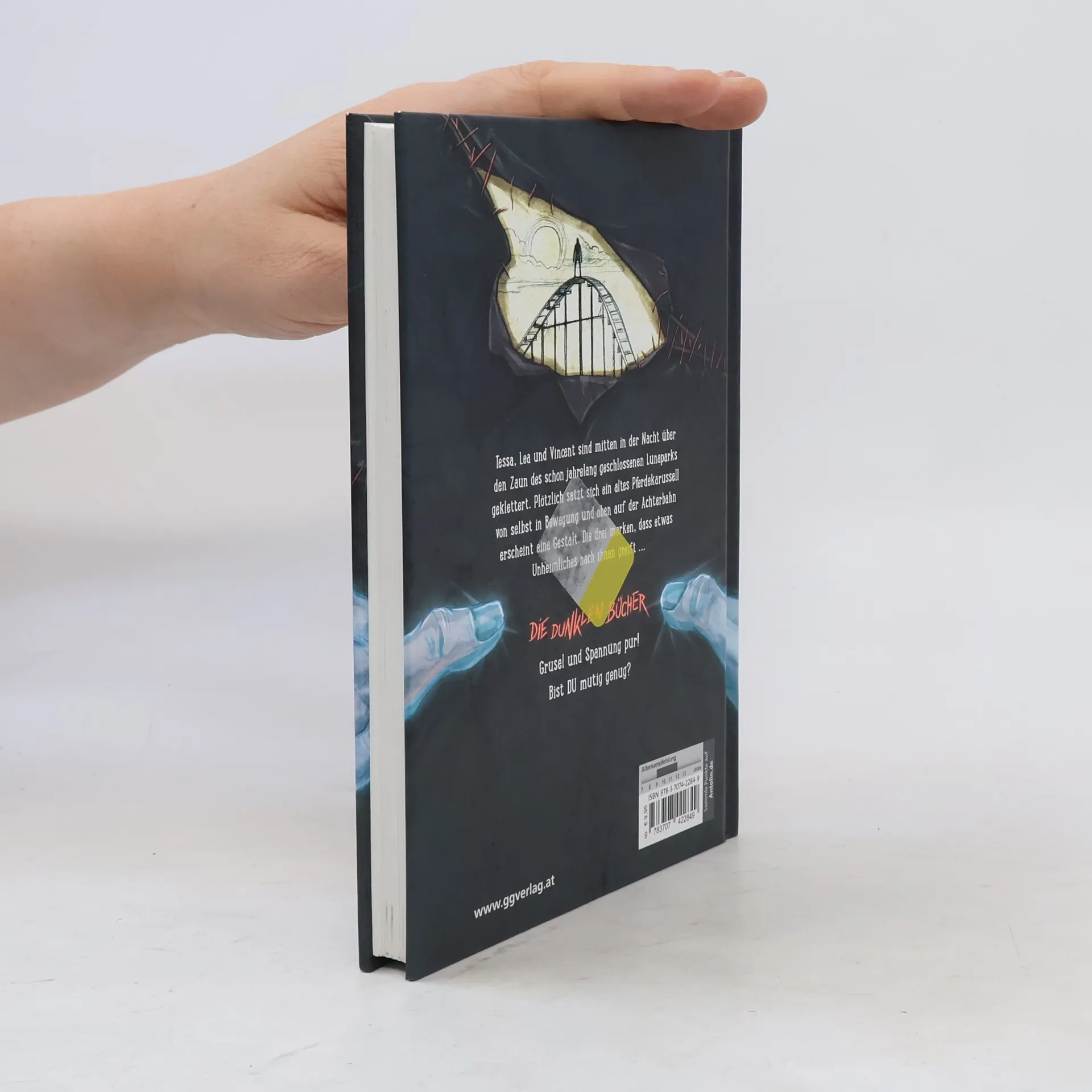 Sind da Schatten? Nur vom Mond beschienen ragt das Stahlgerippe der alten Achterbahn in die Höhe. Tessa, Lea und Vincent sind mitten in der Nacht verbotener Weise über den Zaun des schon jahrelang geschlossenen Lunaparks geklettert – ein bisschen neugierig wird man doch sein dürfen! Als sich aber ein altes Pferdekarussell wie von selbst in Bewegung setzt und sich ein Schatten oben auf dem Looping der Achterbahn bewegt, merken die drei, dass etwas Unheimliches nach ihnen greift …